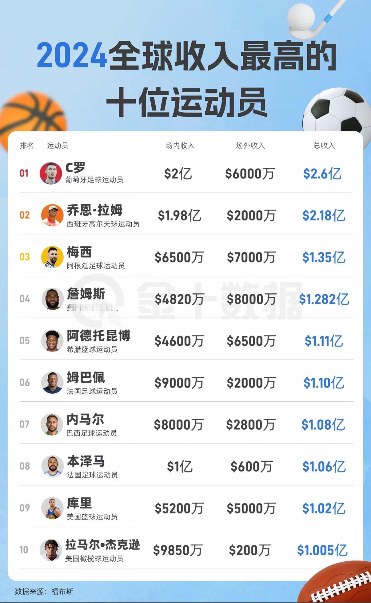 我们来看看全世界最赚钱的体育项目是什么? 全世界最赚钱的体育运动很多人第一时间会想到:足球⚽️和篮球🏀,这两项体育活动像赛事之类的确实非常赚钱,但还不是最赚钱的,最赚钱的很多人一定想不到它竟然是:橄榄球。 为什么说橄榄球是全世界最赚钱的体育项目?这是根据全球的体育赛事收入计算的。 NFL橄榄球2024-2025赛事年收入达到了210亿美元,位居第一。 第二名才是大家熟知的NBA篮球赛事以年收入130亿美元,位居第二。MLB棒球是第三,年收入是126亿美元。英超足球以年收入80亿美元位于第四。(足球因为分为了很多俱乐部,统计起来的总赛事收入是第一的,但是因为分布属于不同国家,只能单一计算。) 还有一个是令人意外的NHL冰球🏒,居然以年收入70亿美元排名第五,冰球这项运动真的是低调的很啊。 体坛个人最赚钱的还得是足球,受欢迎程度太高,球迷遍布世界各地。C罗在2024年以2.6亿美元收入位于体坛收入最高的运动员,第二名大家一定想不到是高尔夫球运动员乔恩·拉姆以2.18亿美元的年收入位于体坛仅次于C罗的运动员。 我们要知道多少上市公司一年都不一定能有2.6亿美金的利润,这些世界级的体坛巨星的收入是天花板中的天花板。