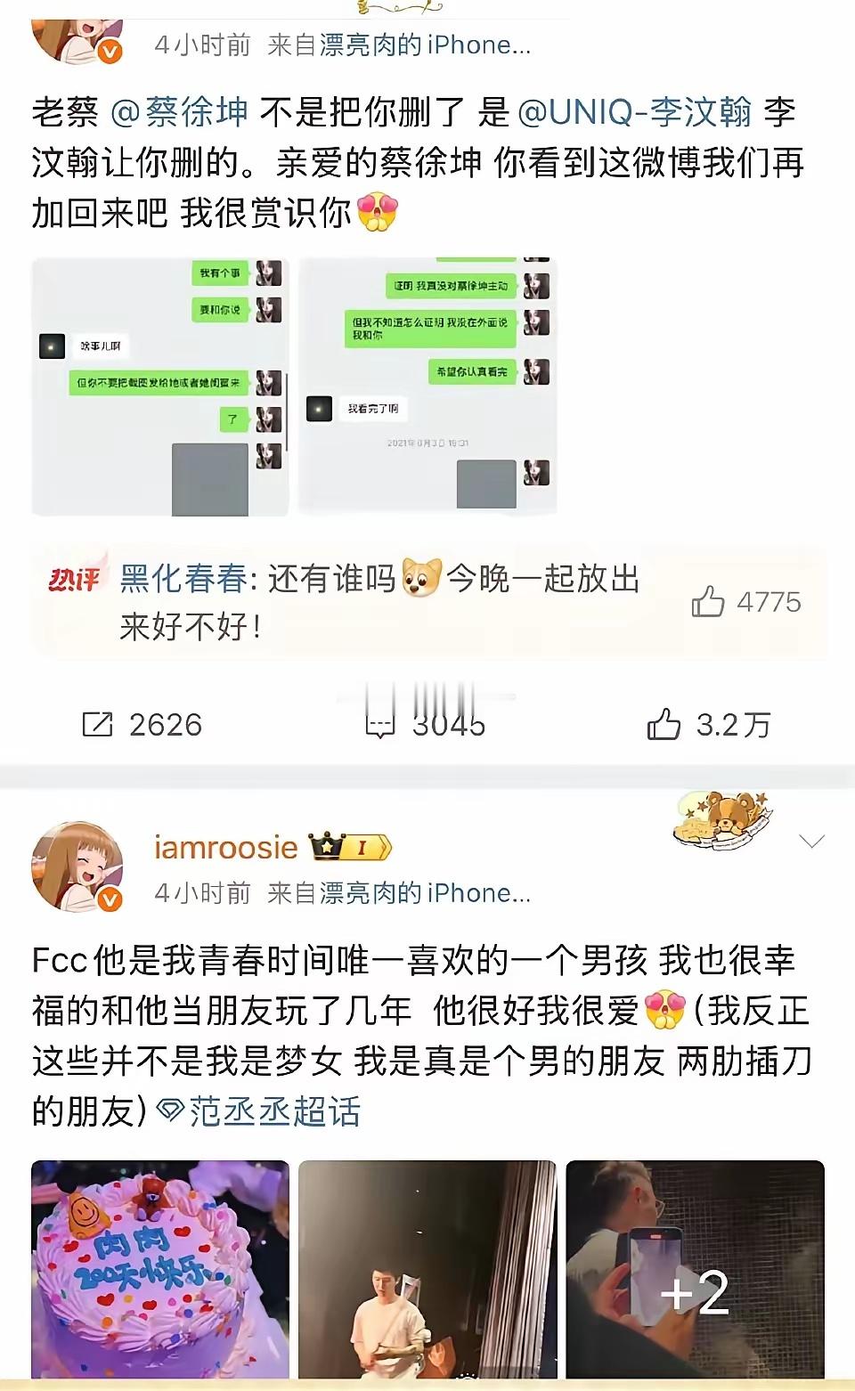 我的妈呀,开年大瓜来了。一博主iamroosie凌晨疯狂爆料,称自己30岁之前把所有顶流男艺人都睡完了,并透露各种细节,引发巨大热议。她还在粉丝群里爆料关晓彤王安宇在一起了。随后,鹿晗、范丞丞、黄明昊、王安宇、林更新等男艺人先后针对这些爆料特意发律师函声明。