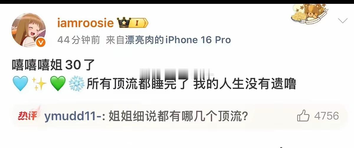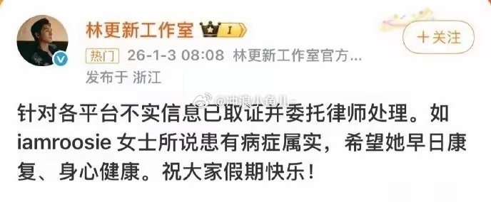 2026年第一大瓜,如果她真能做到,我只能说佩服,我的大神!网友"iamroosie"(本名司晓迪)连发多条爆料,直接点名林更新、范丞丞、蔡徐坤、李汶翰、鹿晗、檀健次等十余名男艺人,还发了"所有顶流都睡完了"的爆炸性言论!目前鹿晗、范丞丞已澄清称爆料为女方遐想精神不正常,林更新直言:“如 iamroosie 女士所说患有病症属实,不会是想出名想疯了?