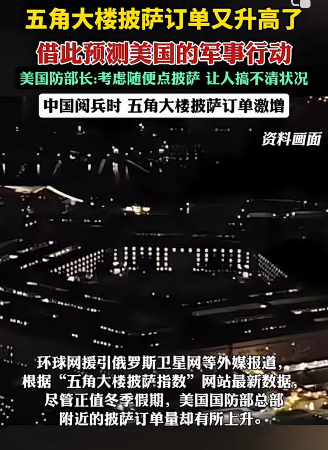 不用信特朗普等美高官的嘴,但一定得信和重视五角大楼附近的披萨店热卖指数 特朗普新年刚许下新年愿望,愿世界和平,还是连说三遍。结果没隔两天,特朗普就下令对委内瑞拉发动空袭…… 果然,即便正值新年伊始的冬季假期,也一定要重视这异常升高的五角大楼披萨指数。即便老美的国防部长塞格斯曾称会故意订披萨来迷惑外部,但真的是宁可信其有、不可信其无。 宁愿相信可能作假的披萨指数,也不要相信美国高官骗人的嘴。经此一役,或称真理!真希望委内瑞拉抗住,甚至还能让炮弹丢到老美家,让他们也尝尝味道。