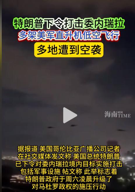 特朗普终于下令,对委内瑞拉动手了! 本以为美国会通过外交途径协调分歧,没想到却动辄诉诸武力。当地时间1月3日凌晨,特朗普政府下令美军对委内瑞拉境内目标实施打击,多架CH-47直升机低空飞行引发多地爆炸,此举无疑是对他国内政的粗暴干涉,更是霸权主义的赤裸炫耀。 委内瑞拉作为主权国家,其领土完整和内部事务理应受到尊重,而美国未经联合国授权、无正当法理依据便发动空袭,本质上是将自身意志凌驾于国际秩序之上,彻底暴露了其“顺我者昌,逆我者亡”的霸权心态,破坏了全球主权平等的外交基石。 委内瑞拉局势本就复杂,美军的军事打击不仅造成当地设施损毁、通信中断,更可能激化国内矛盾,甚至引发周边国家的恐慌与抵触,导致拉美地区地缘政治格局失衡,滋生新的冲突与难民危机,让本就脆弱的地区和平雪上加霜。 特朗普政府此举延续了美国“动武优先”的短视策略,无视国际社会对和平解决争端的普遍诉求,会让更多国家对美国的信任度持续下滑,倒逼各国加强自身安全防范,冲击以联合国为核心的国际安全架构。 美军对委内瑞拉的空袭,是对国际法的公然践踏,是对地区和平的蓄意破坏,更是霸权逻辑的野蛮彰显。若美国一意孤行,持续以武力干涉他国内政,最终会陷入孤立无援、引火烧身的恶性循环。