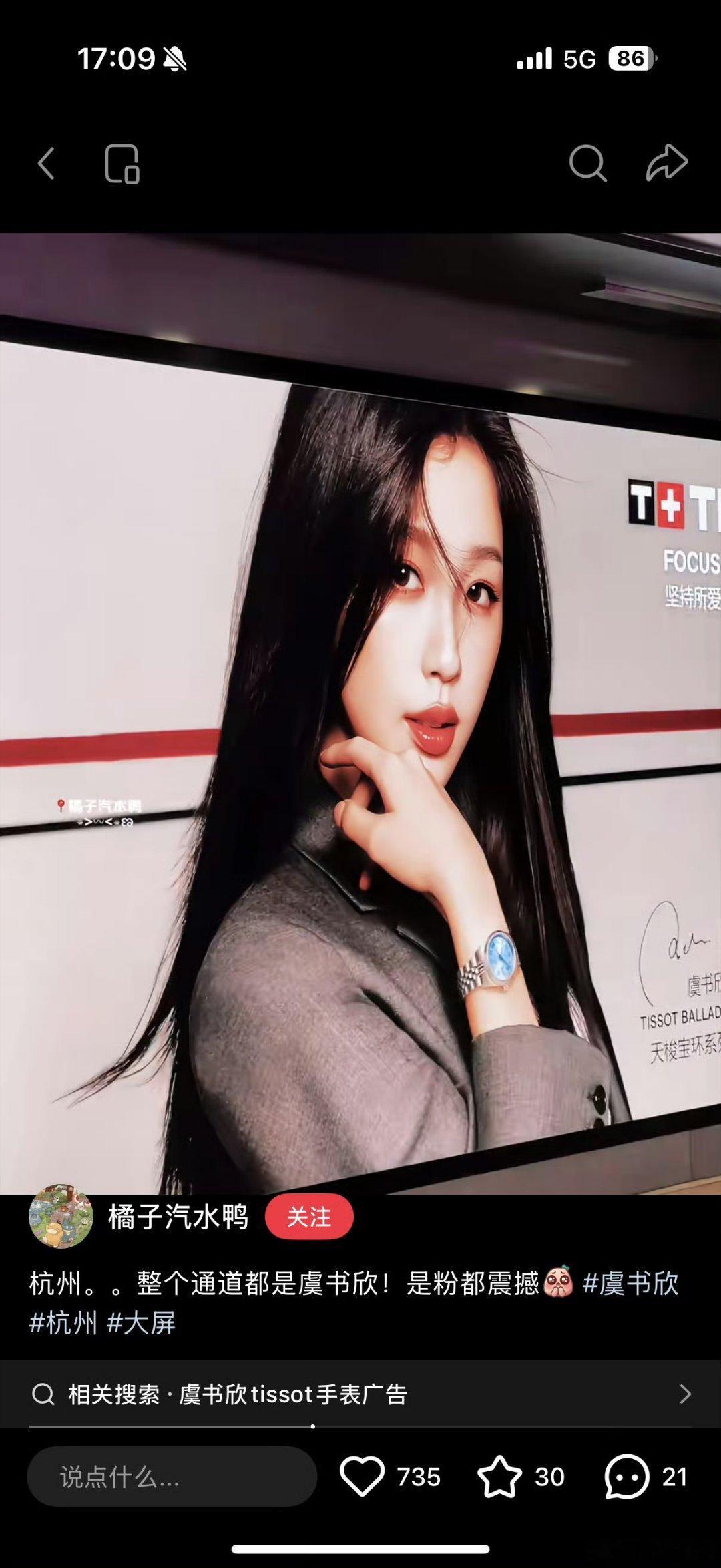 天梭给虞书欣的大地广又来了