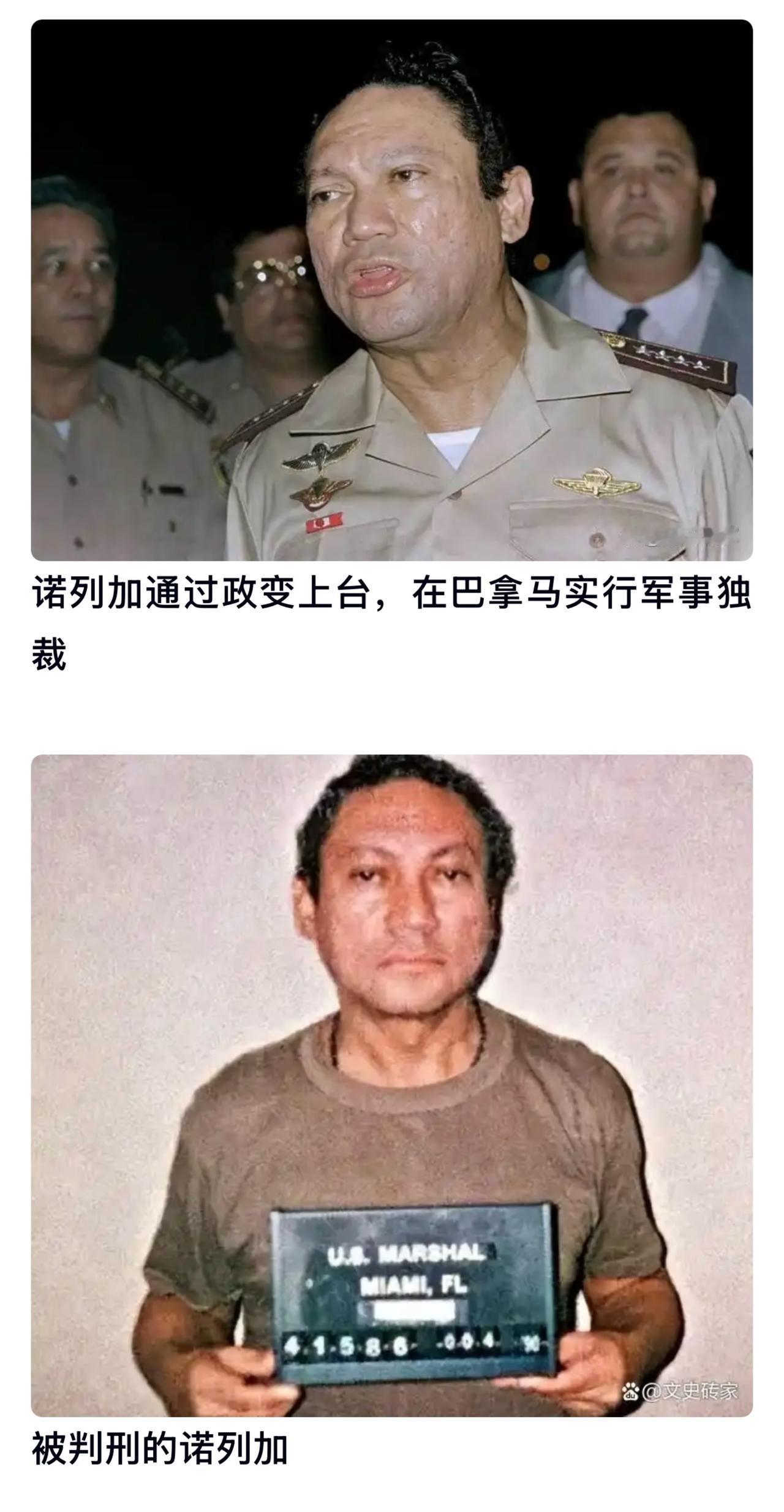 历史重演 36年前的今天 曼努埃尔·安东尼奥·诺列加(1934-2017),前巴拿马实际统治者。他在1983年成为国民警卫队司令后掌握实权,并推动国防军改制,同时要求美国归还巴拿马运河主权,导致与美国关系恶化。 1988年,美国法院起诉其贩毒。1989年美军入侵巴拿马,次年的1月3日诺列加被捕,于1992年被美国判处40年监禁,后减刑并于2007年出狱。此后又被引渡至法国判刑,最终于2017年去世,终年83岁。