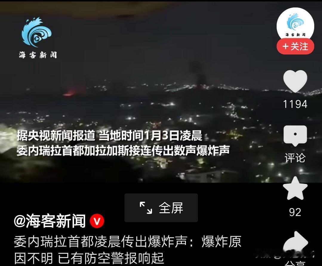 快讯!美军称已正式入侵委内瑞拉。 正当全世界沉浸在新年的喜庆当中之时,美军竟然以迅雷不及掩耳盗铃之势对委内瑞拉的首都进行了攻击。 1月3日,委内瑞拉首都加拉加斯当地市民拍到了美军武装直升机,并且有不断的爆炸声。 此外,在米兰达州,阿拉瓜州和阿拉伊拉州也相继传来了爆炸声,当地的军事目标被摧毁。