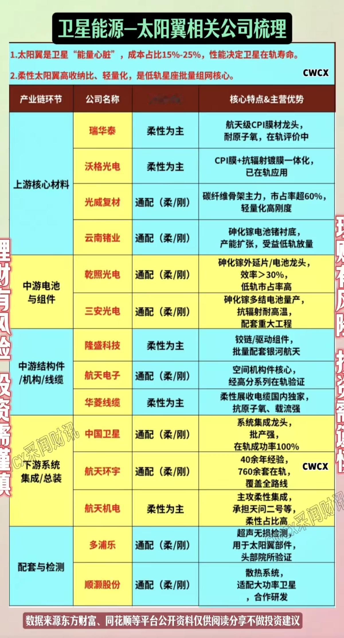 卫星能源——太阳翼概念! 1.太阳翼是卫星的能源心脏 2.柔性太阳翼,高收纳,轻量化 相关核心龙头股: