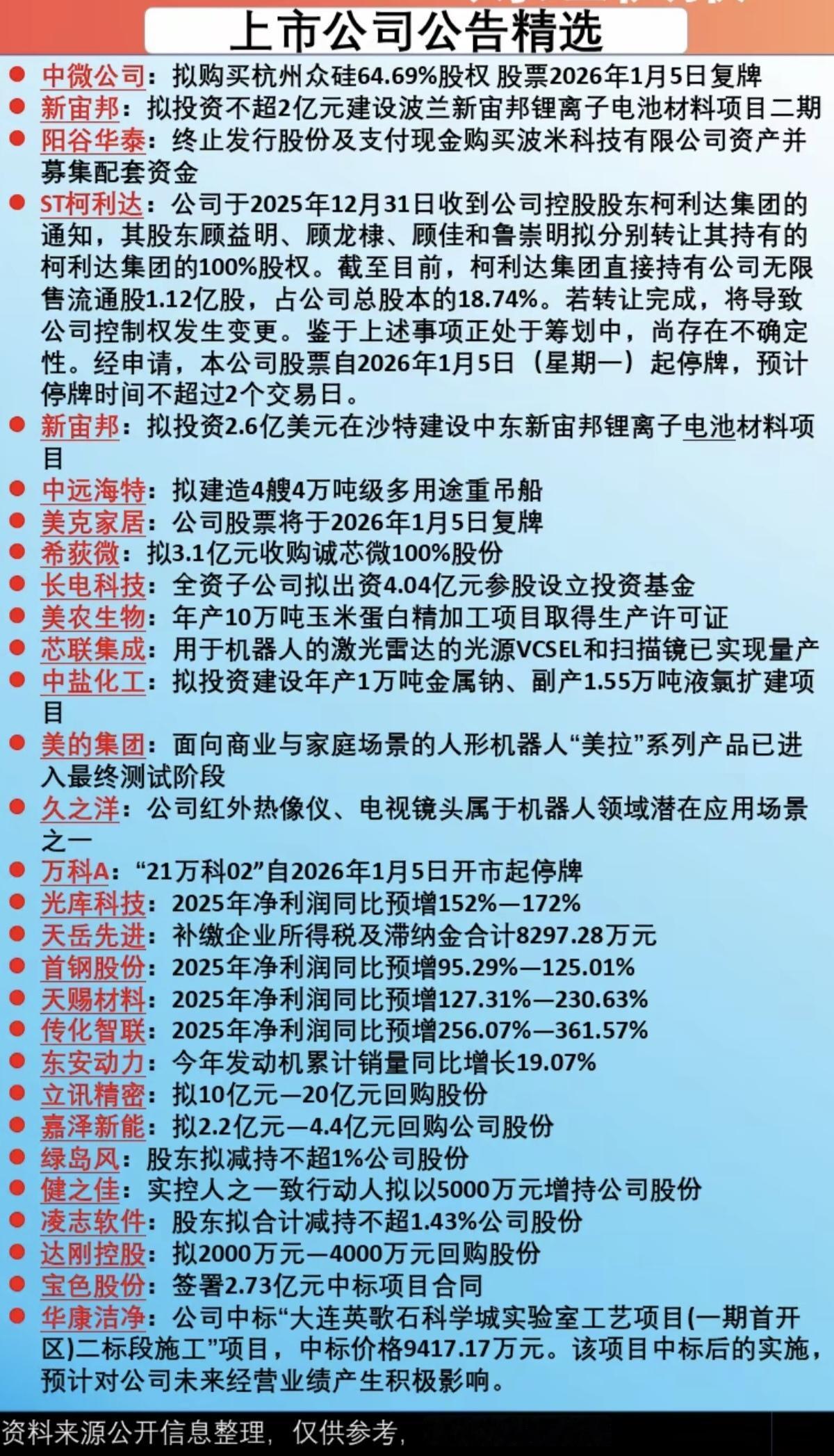 1.5周一盘前 最新:上市公司公告精选! 公告主要涉及: 21万科02债券停牌,家庭场景机器人,停复牌,年报预增,回购股份,减持计划,股权变更,项目中标等。