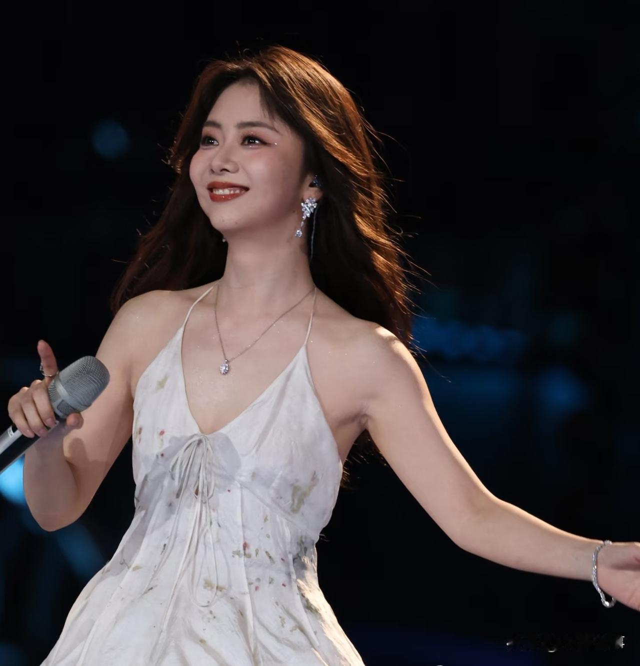 我老公的同事去了湖南跨年晚会现场,回来说起谭松韵,讲了一句大实话。 他说电视里的谭松韵总是幼态可爱,但真人不一样了,有一种藏不住的魅力。 他之前觉得她像个瓷娃娃,好看是好看,就是少了点味道。这次见完,他居然笑着说,觉得她连吱吱窝都是香的,真是没救了。 我听完没笑,反而愣了一下。这话听起来有点夸张,但好像又有点道理。我特地去找了那晚的回放。她穿一条简单的白色吊带裙,站在台上安安静静地唱歌。妆很淡,头发松松地卷着,没有刻意扮嫩,也没有硬凹成熟。那种好看,不是咄咄逼人的,是一种很安稳的舒服。她一笑,眼睛弯起来,那个梨涡还在,但感觉确实不一样了。不再是邻家小妹妹的那种甜,甜里面好像多了点东西,是能稳住场子的温柔。 我突然就懂了那个同事的话。女明星的美常常是隔着屏幕的,精致却遥远。但谭松韵那次的样子,却让人感觉到一种很实在的成长。她没刻意甩掉“甜妹”的标签,只是很自然地让这个标签跟着自己一起长大了。这不只是造型的成功,更像是一种心态的流露。她证明了一件事,女孩子不一定非要撕掉过去的自己才能变得有魅力。真正的转变,是能把曾经的特质,酿成更耐品的美。