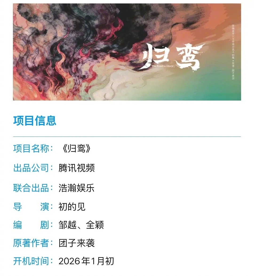 晋江连载小说《归鸾》影视化,1月9号开机,主演张凌赫、林允。这组合,别的不说,视觉上先赢一局两位都是95🥜🌸里颜值能打的那一档~张凌赫新剧9号开机