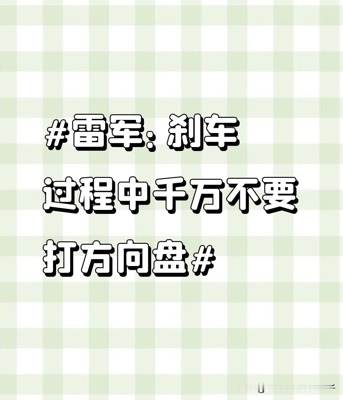 雷军:刹车过程中千万不要打方向盘 雷军在直播谈小米汽车高阶驾驶培训时说,遇到危险一脚刹死最安全,刹车过程中千万别打方向盘,不然容易侧滑。这话一出网上就炸了,有人调侃驾校白学3个月。其实,雷军指的是高速行车应急情况,像车速超100码,前方突然有障碍无法避开时,踩死刹车稳住方向盘是最优解。现在主流电车都标配ABS、ESP、EBD三大刹车稳定系统,能实时调整各轮制动力,实现“电子极限救车”。要是没这些系统,一脚踩死,轮胎抱死抓地力不足,车就会漂移。