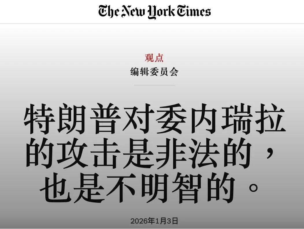 美军“闪击”委瑞内拉,三角洲部队抓捕马杜罗夫妇。 《纽约时报》随后发文:特朗普对委瑞内拉的攻击是非法的,也是不明智的。