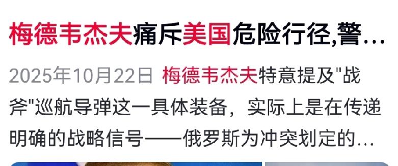 梅德韦杰夫火力全开,痛批美国对委内瑞拉动武是“美国式维和”——没威胁的主权国家说打就打,霸权嘴脸彻底藏不住了! 全球围观之余,也给各国敲响警钟:手无寸铁,政权难保。他更直言:唯有核武,才是终极护身符。 这话瞬间点醒很多人:难怪朝鲜咬牙也要拥核!可矛盾也来了:若各国跟风造核,世界岂不危殆?但面对强权,无核国家又何来安全感?这道安全悖论,正撕裂国际秩序。 对此你怎么看? 俄美交锋 委内瑞拉局势