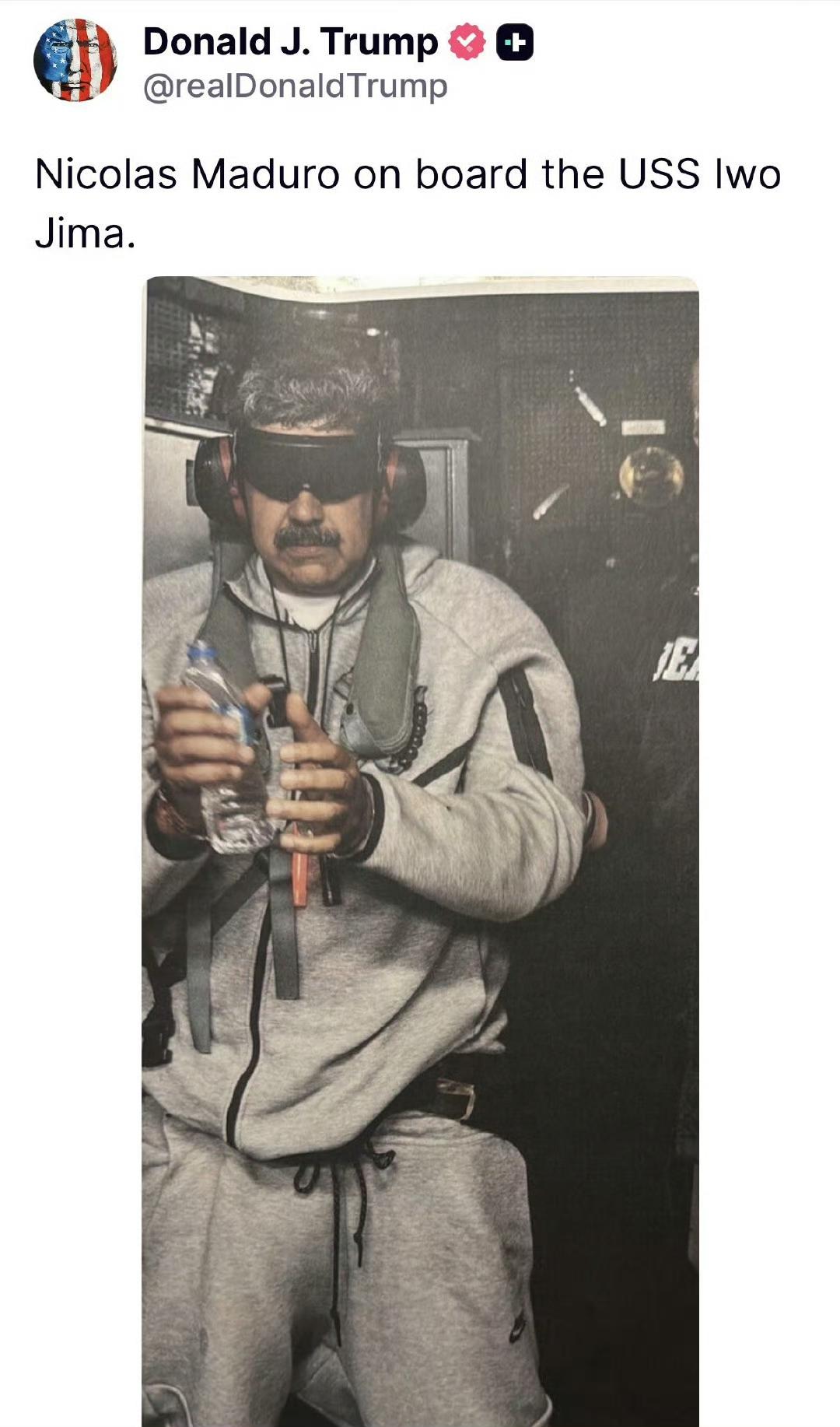 马杜罗被捕对委内瑞拉政局有何影响根据最新视频显示,马杜罗在凌晨被美军从硫磺岛号两栖攻击舰转移到某美军空军基地,然后乘坐美国司法部的波音757公务客机飞往纽约并已落地,预计将被拘押在纽约布鲁克林大都会拘留中心。另据最新消息,马杜罗在被抓前,本来要潜入安全屋避难,结果没来得及。