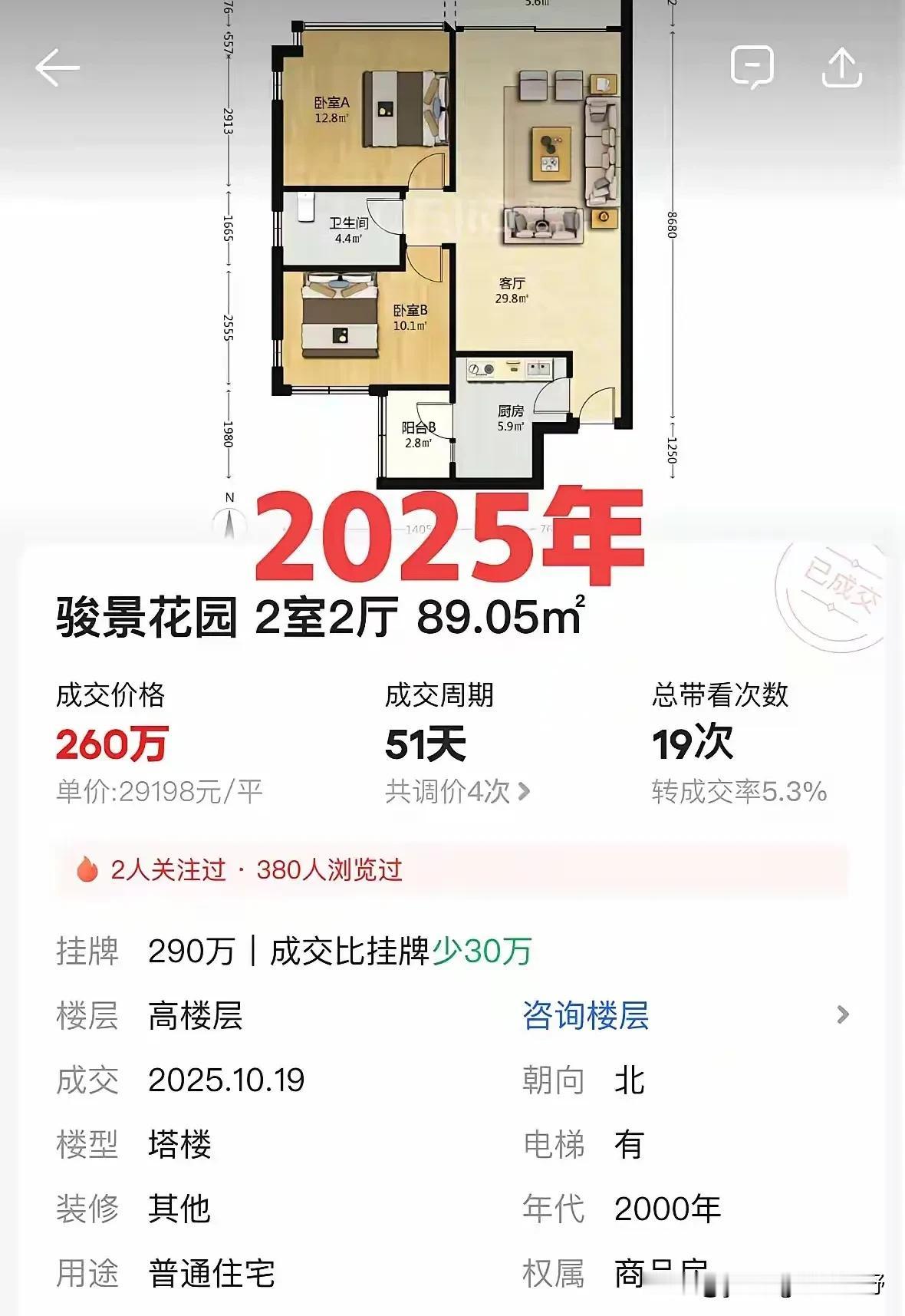 广州天河的骏景花园,在广州市也算是小有名气的一座住宅小区了。位于中山大道前的八匹马雕塑也成为了棠下一带的一个地标。位于主要道路中山大道旁,门口是BRT车站,有多条线路通达广州各地,让这个小区也一度成为天河区比较热门的小区。当年高峰期一套90方左右的房子可以卖到566万元,算下来差不多6万多一方。但到了现在几乎同样的户型只能卖到260万,算下来不到三万元一方。在前些年能够出手的业主,可真的是大赚了一番。