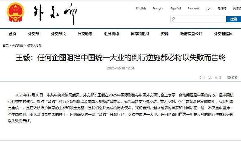 王毅外长发出统一最强音,向全世界通报两件事,中国再也不避讳了 12月底,台海方向突然变得热闹起来,这一次,不是舆论炒作,也不是某些政客的嘴炮,而是真刀真枪的演训和一句掷地有声的外交声明,一起上了场。 解放军动了,外交部也不再拐弯抹角,一句话:中国这次不打算再遮遮掩掩了,王毅外长的表态,直接点透了当前的局势,也把中国的态度摆到了最明面上,统一这事,现在是开弓没有回头箭。 这场演训,名字叫“正义使命”,一听就是冲着正事去的,压根不是平时那种例行训练,布局上也不再是点到为止,而是把整个台岛的周边都动起来了。 东、南、西、北,甚至连东边海域都没放过,你说这是练兵?不如说是实打实地告诉所有人:我们不仅想好了怎么统一,还准备好了具体怎么干。 最特别的是这次的部署方式。不再是象征性地绕一圈,而是直接把关键位置给锁了,高雄、基隆这些要地都在演练范围里,海空一体、远近结合,怎么看都不像是单纯“秀肌肉”。 如果再加上火箭力量的模拟打击,那意思就更明显了:不是说说而已,连“点哪打哪”的方案都已经过了一遍,这种打法,谁还看不出门道,那可真是故意装糊涂了。 也就在这场演训正在进行的时候,王毅在外交场合开了口,不是普通发言,也不是走流程,而是一次很明确的定调,他讲了两件事,句句都是重磅。 第一件,统一是必须完成的事,不是拖着等的事;第二件,美台之间的那些勾连动作,中方不会再忍,也不会只靠嘴说反对了,这两句话,基本就把中国在台海问题上的底线和方向说透了。 要知道,过去中国在统一问题上的表述一直相对克制,虽然态度没变,但说话的方式多少还有点外交风格,但这次,不一样了。 用的词更直接,语气更硬,给外界的信号也更清楚,尤其是把“必须完成”这个词摆出来,那就不是表达愿望,而是明确任务,说白了,不统一不行了,不能拖了,也不想再绕弯子了。 再看美国那边,2025年特朗普回归白宫后,对台湾问题的态度比上次执政时更放开手脚了,军售没停过,军人顾问也没少来,甚至还想在一些关键节点上帮台湾“刷存在感”。 但问题是,中国不是2016年那个中国了,以往的忍让换不来对方的收敛,那干脆就不再忍了,这次的军演和外交表态,其实就是对美方动作的直接回应。 而且,值得注意的是,这次中国对外部干涉的态度也发生了转变,过去总是说“维护台海和平稳定”,听起来像是希望大家都冷静点,但这回的意思很明确:谁要是动手干涉统一,就别怪我们动真格的。 东边海域的演练,就是冲着这个来的。不是虚张声势,而是把“你要来掺和,我就先拦你一下”的能力摆给你看。 还有一点容易被忽略:中国这次在信息公开上的透明度非常高,现场画面、战区部署、外交发言,全都第一时间对外发布,这种做法在以前并不常见。很多时候,军事动作是低调处理的,但这次完全不同。 信息越快、越公开,说明越不怕被误解,甚至希望你看清楚,这背后的信号是:我们不是临时起意,而是早就准备好了。 从岛内来看,民进党当局依然在搞小算盘,妄图通过一连串动作把“台独”做成既定事实,但现实是,这种幻想已经被一次次打破。 每次挑衅一升级,大陆这边的回应就更直接,这次的军演和王毅的讲话,其实就是告诉他们:这条路走不通,而且越走越危险。 王毅这番话,最有力量的地方在于不再模糊,他没有说“我们希望”、“我们敦促”,而是说“必须”、“坚决”,这不是姿态上的升级,而是政策上的转向。如果说过去是“以拖待变”,那现在就是“以进止乱”。你越想拖,我越要推进;你越想乱,我越要管控。这种策略调整,对当前的局势影响是深远的。 有人可能会问,这么做是不是会让局势更紧张?但从中国的角度来看,拖不是办法,忍也换不来尊重。 统一不是赌气,而是国家完整最根本的一部分,不统一,国家就总有隐患,而且,岛内的局势已经证明,越不出手,对方越是胆子大,那还不如趁现在把态度讲明,把对策摆开,省得再被对方误判。 从国际环境来看,当前确实是一个敏感期,美国重新调整对华政策,欧洲内部心思也不一样,亚洲周边局势也在波动,但正因为如此,中国更需要把自己的意图和态度讲清楚。 不是为了秀存在,而是为了避免误判,统一不是为了挑衅,而是为了完成一个迟来的国家承诺,这个过程越拖,变数越多,成本越高。 说到底,这次军演不是单点发力,而是系统布局;王毅的讲话也不是单方面表达,而是整体战略的一部分,两者合在一起,构成了对内、对外、对敌、对友的全方位信号传递,你想看清楚中国的态度,这就是最直接的答案。 最后,再回到那两句话上——统一是必须完成的任务,对外干涉要坚决反制,这不只是外交口号,而是行动指南。