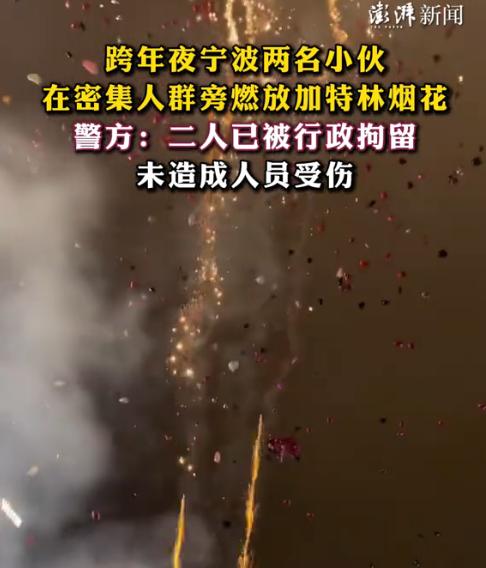 “太过分了!”12月31日,浙江宁波,一商场举办跨年夜活动,众人将手里的氢气球放飞后,人群中的两男子突然向空中燃放手持烟花,顿时火星四射,吓得周围的人四处躲避,警方随后到达,控制场面,未引起伤亡。网友:不要命了吧! 氢气球在现在的活动和节日庆典中极为受欢迎,例如跨年夜上,好多商场都会举办氢气球放飞的活动,节日气氛也是拉满了。同时近几年有个手持烟花也是极受欢迎,燃放者可以用手操控向天空任意位置发射,也是颇有感觉,不过,这两个遇到一起可就不好玩了。 据媒体报道,跨年夜这天,当地一商场也是举办了放飞氢气球的活动,就在大家放飞氢气球后,还在沉醉在一起跨年的喜悦中时,人群中的两个小伙,突然就举起了手里的手持烟花,向天空燃放起来,顿时火星四溅。 远处不明白的人在欣赏烟花,而近处的人都快被吓傻了!四处避险,引得一片混乱,大家真是又慌张又想骂人,刚放完氢气球,这两个人就放烟花到处喷,这要是火星溅到氢气球上极易引起爆炸起火,人员这么密集跑都跑不过来。 两个小伙丝毫没有感觉不对,还很是兴奋,拿着烟花到处喷,觉得自己特别拉风,好在民警及时赶到现场立马控制住了其中一位,另一位见民警到达后吓得扔下烟花就跑。 由于燃放烟花爆爆竹极易发生火灾,因此现在很多地方都已划定烟花爆竹禁燃区域,尤其是人员密集的地方,因此,烟花燃放应在合理地点。网友表示,这种人就应该重罚,简直无知,把生命当儿戏! 信息来源:《跨年夜宁波两名小伙在密集人群旁燃放加特林烟花,警方:二人已被行政拘留,未造成人员受伤》澎湃新闻