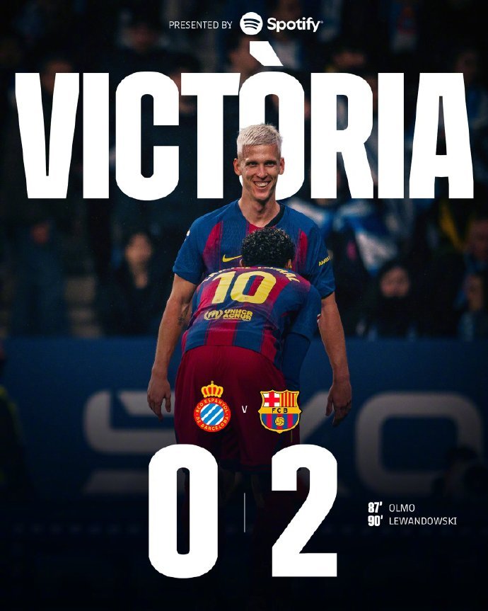 #巴萨各项赛事八连胜#西甲联赛第18轮,西班牙人坐镇RCDE体育场迎战巴塞罗那。上半场霍安·加西亚神扑;下半场霍安·加西亚再献神扑,费尔明分别助攻奥尔莫和莱万破门,最终巴萨2-0西班牙人,各项赛事八连胜,先赛情况下7分领跑。#西班牙人vs巴萨##西班牙人0比2巴萨#