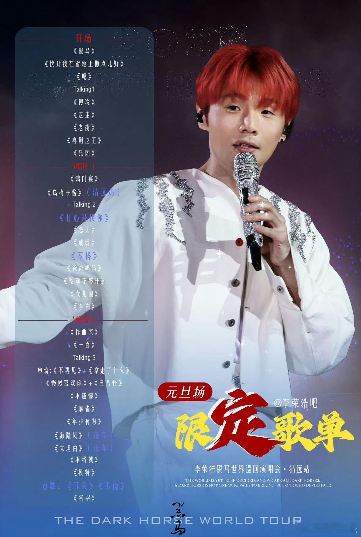 李荣浩三天唱了100首歌 黑马巡回演唱会清远站三天连唱了100首歌,《黑马》《老街》《恋人》《乌梅子酱》…从经典老歌到金曲情歌,首首都是全场大合唱的快乐谁懂!李荣浩