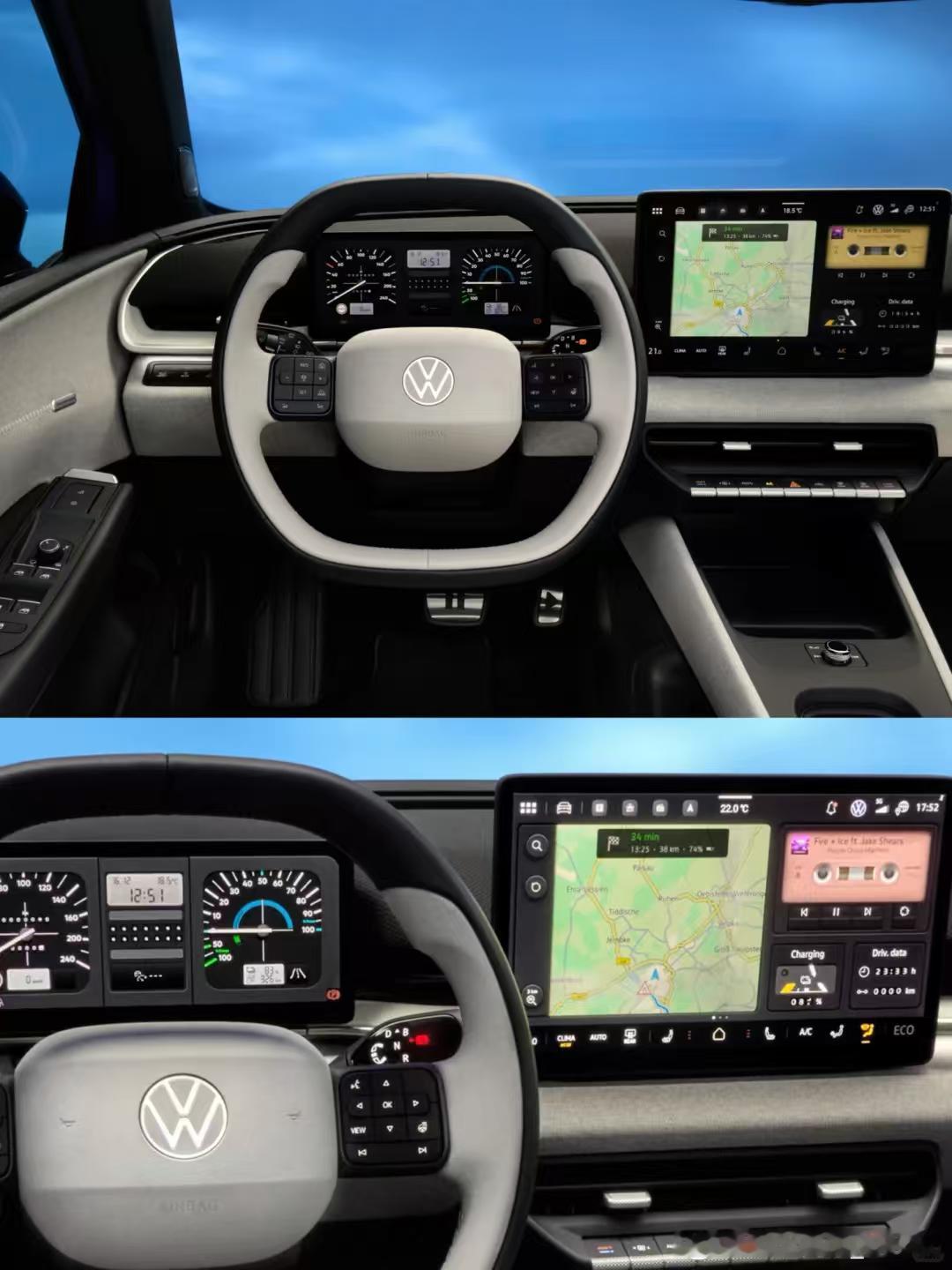 图一是大众刚刚放出的ID.POLO 仪表盘和方向盘的样图图二/三是经典普桑/PASSAT B2的仪表和方向盘的图在迷茫过触控面板-电容触摸按键后,大众开始在人机交互方面回归传统物理按键。新车也是两幅式方向盘,左右盘辐都有九宫格按键面板,非常规矩。内饰基础元素的运用也是相当复古了。仪表盘也回归了“表盘”的基本定义,实时提供数据并进行提示,布局都和三十年前惊人相似。潮流可能真的是一个圈,而且人总是会对面前已经拥有的东西产生乏味的感觉,回归物理按键不一定就代表这种设计是“最优解”,但对于我这种保守的、喜欢机械化操作杆的人来说,肯定是好事儿。我与汽车的日常