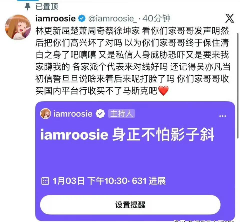 明星集体辟谣,她在外网直播甩出“从夯到拉”排名榜单。 微博删了爆料,律师声明刷屏,司晓迪转头引爆新战场。 她在直播中暗示手握更多证据,明星团队被指联系删帖。 网信办清朗行动整治网络暴力,法律界提醒诽谤风险。 娱乐观察点破粉丝非理性追星,这场风波照出光鲜背后的裂痕。 你看到的不是八卦,是娱乐圈在真相与流言中颤抖的倒影。
