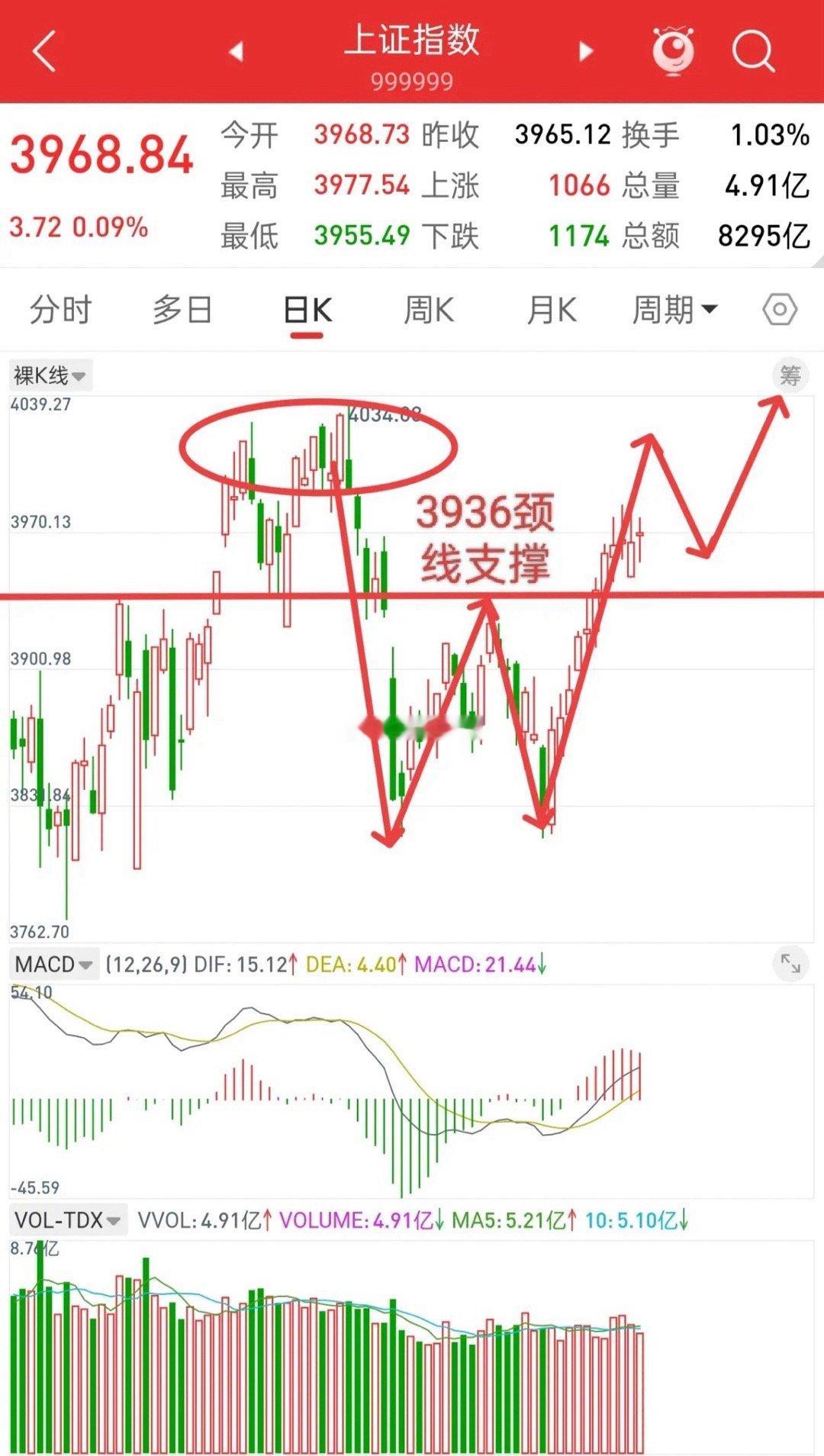 明天就开盘了,节后A股走势会如何演绎?先说观点,大盘明天很有可能继续往上攻,大概接近4000点,以及接近前高4034,可能还会涨个1-2天,然后会小幅回踩下,但是大概率回踩力度不大。比如回踩到3950左右,随后开启新一波慢牛行情,最后一直把4034完全突破。这样走的话,就很像4.7号那一波,连续拉升之后,很多人踏空,技术派又总想着在3312那里进场,结果行情就到3332,就差20点,启动一波慢牛。这一次也是一样,很多技术派可能还想着等回踩3936进场,那行情后面即使回踩,可能到3950附近,就启动新一波慢牛。市场就是这样,它可以破一下支撑,洗出技术派,也可以不到位置,让那些总想着抄在最低点的人踏空。