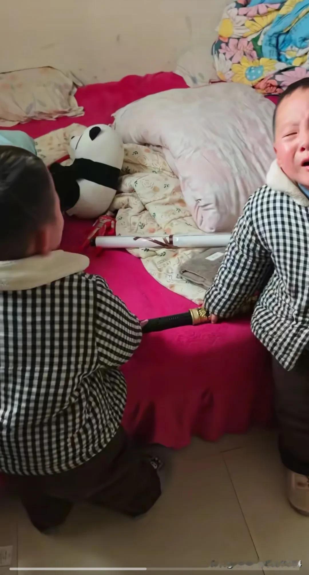真替这爸爸头疼!河南,一大哥给俩儿子买了金箍棒,开心地带他们去快递站拿,结果拆开一看只有一根,当时大哥头都懵了“这下完了,坑爹的商家” 果真俩双胞胎儿子立马一人抓住一头开始争抢哭闹,跟狼嚎似的,大哥想强行拿走也晚了!因怕丢人,他只得赶紧先把俩神兽给弄回去,可到家,这哥俩也没松手,反而争抢得更厉害! 大哥打也不敢打,实在受不了,发视频到网上求救。网友:多胎家庭网购订单自觉备注:想要我命你就分开发货,家里神兽不放过我,我也不会放过你。商家:那我最多再送你一个小礼物 还有网友说,一步错步步错,别着急!等第二根到了,第一根没电了金箍棒不闪了,还得打! 笑死了,网友们是会幸灾乐祸的!孩子多,果真是甜蜜的负担,特别是两三岁时最让人头疼![捂脸] 猴王金箍棒