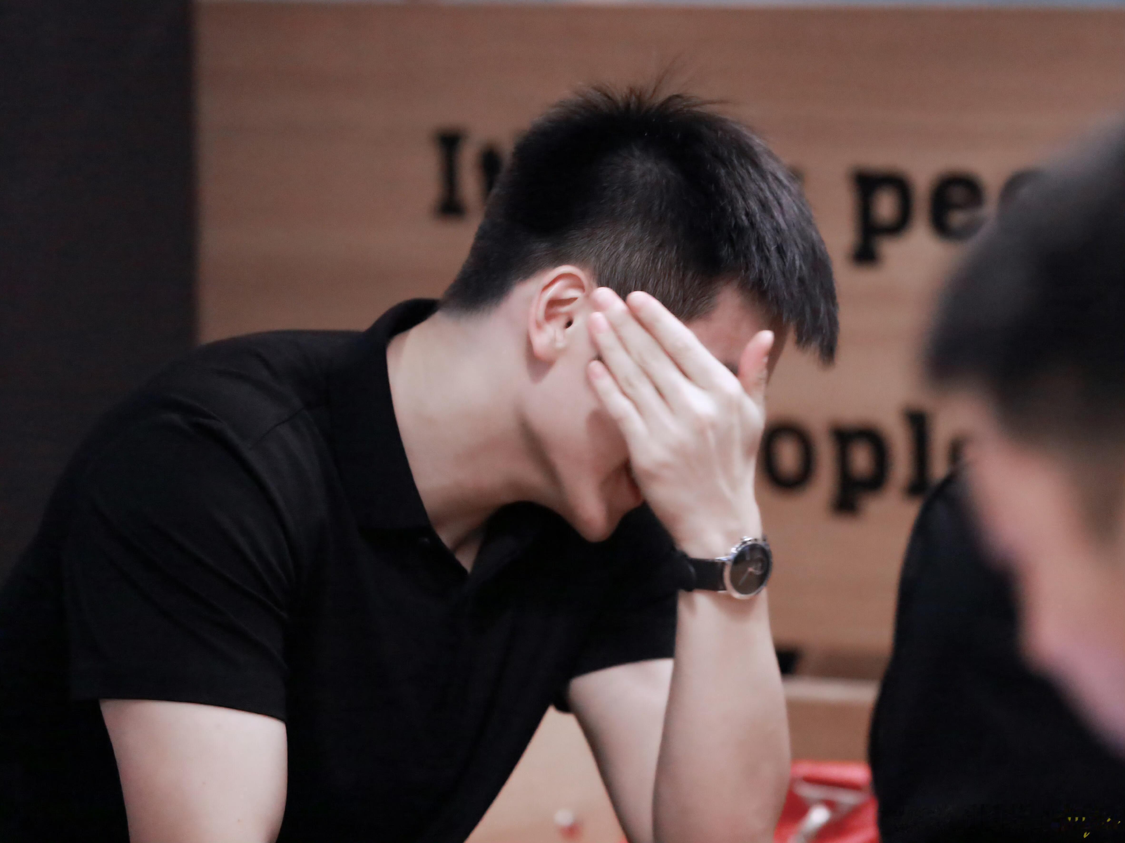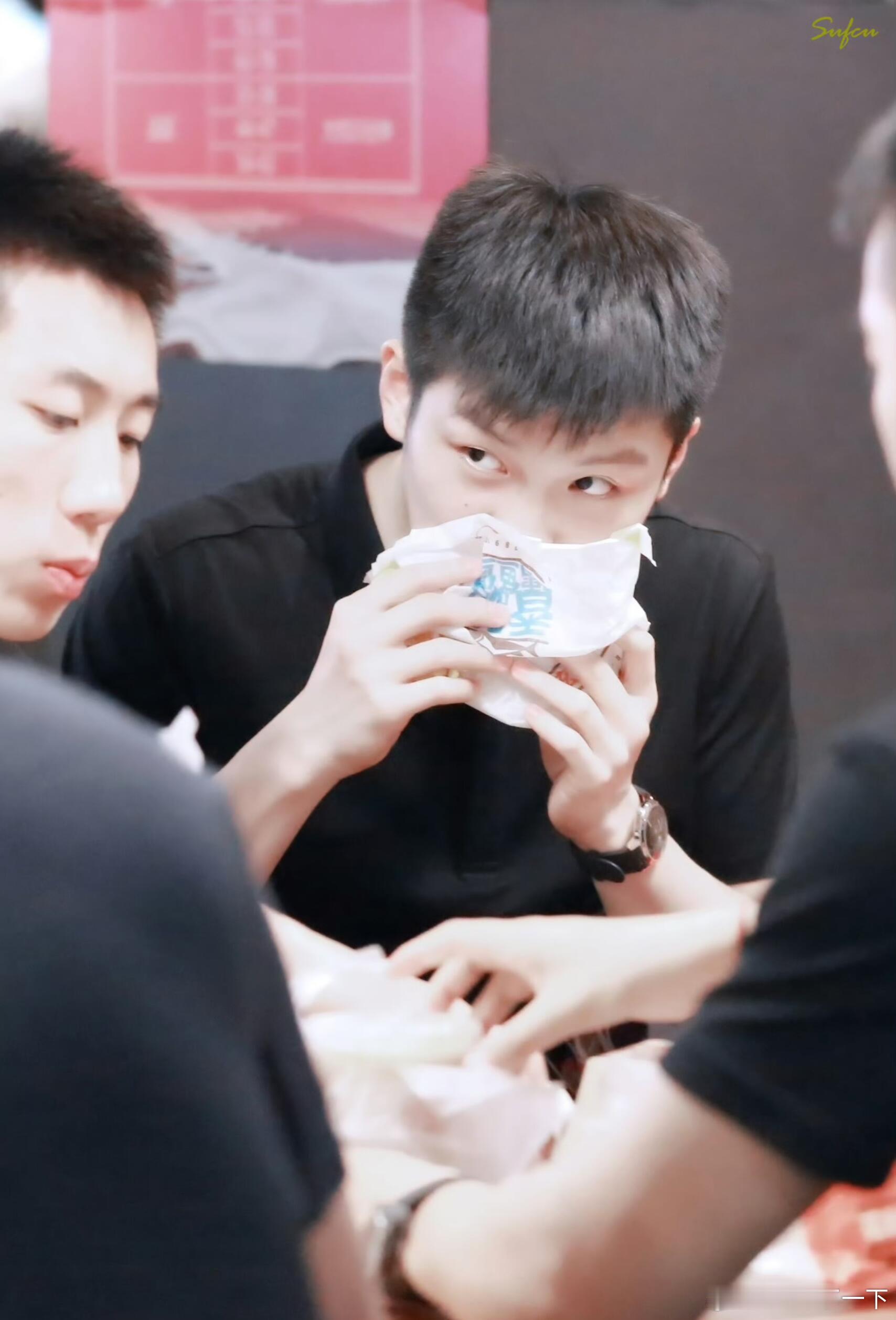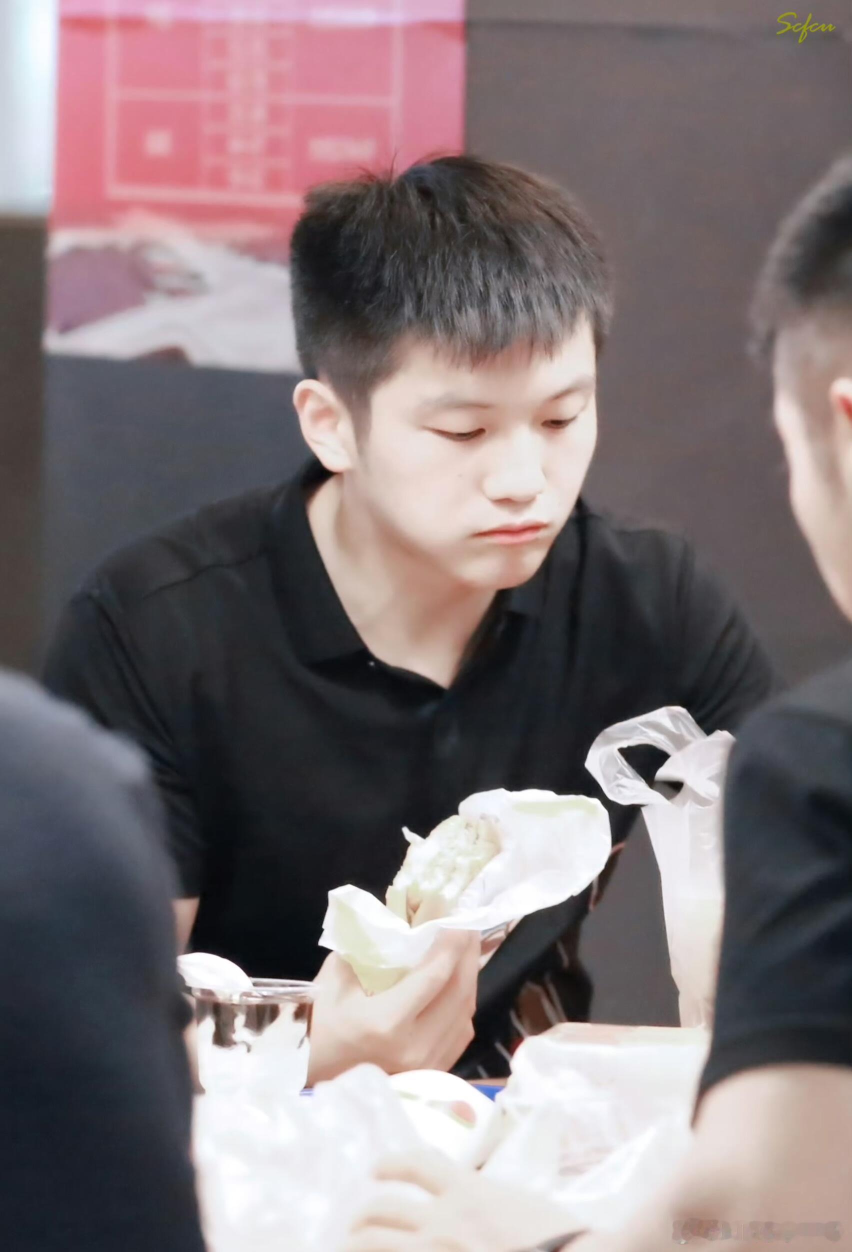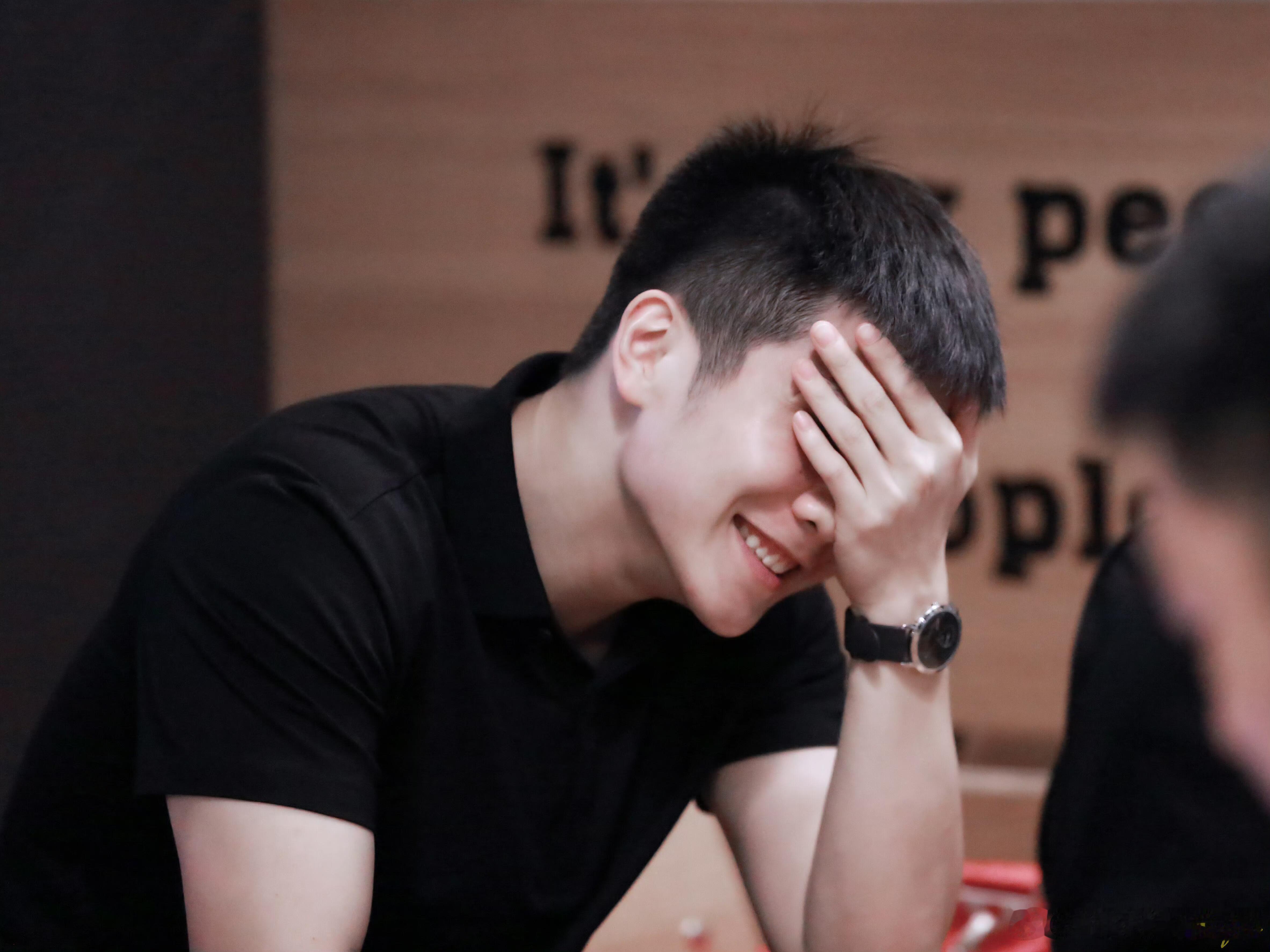 樊振东小卷毛造型超级可爱。 猜人:躲在东东后面这位是谁?
