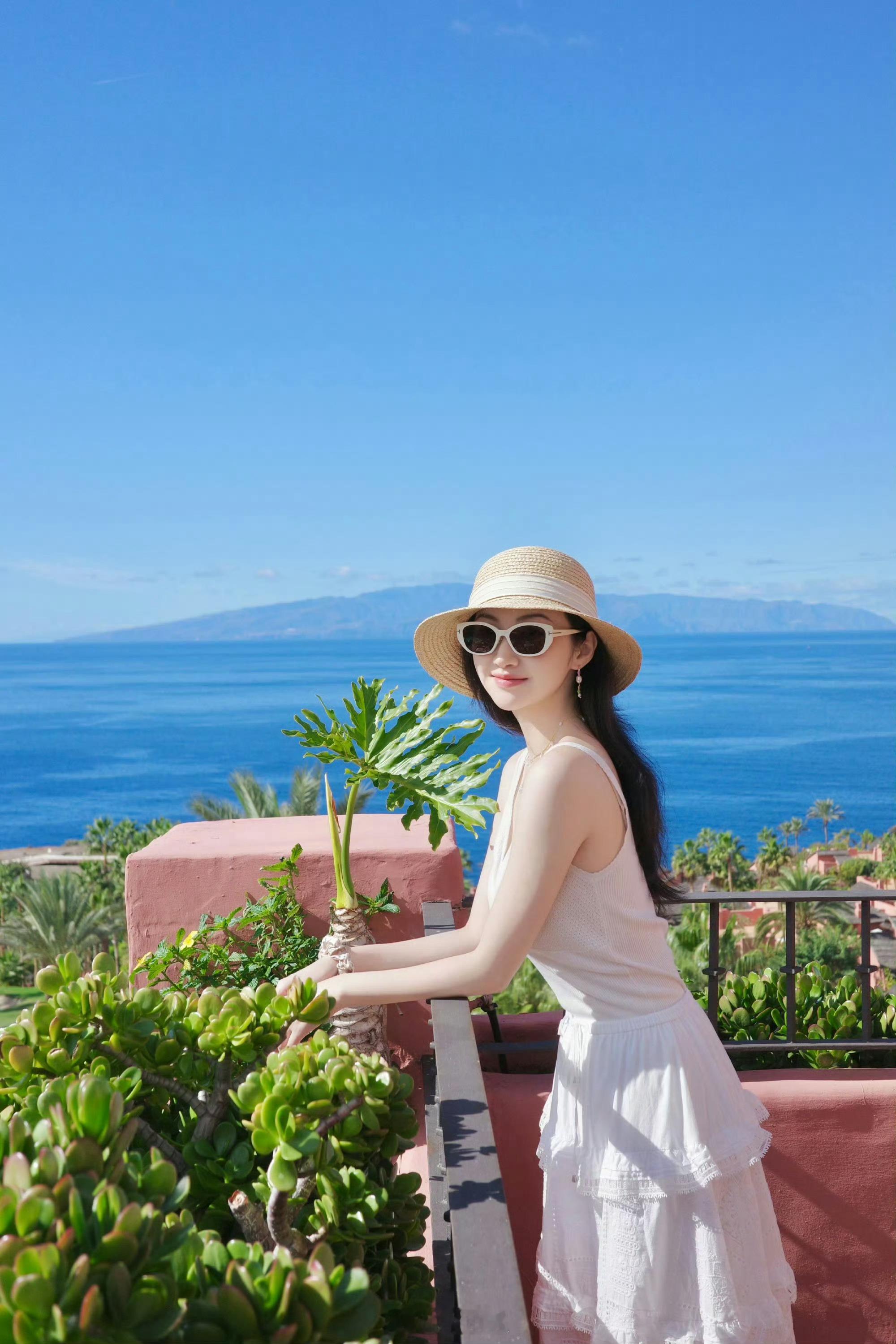 景甜白到发光的旅游照谁懂啊!景甜海边美照好绝,白裙配草帽明媚又鲜活,皮肤白到发光,这状态我能循环看一百遍! 绝了!