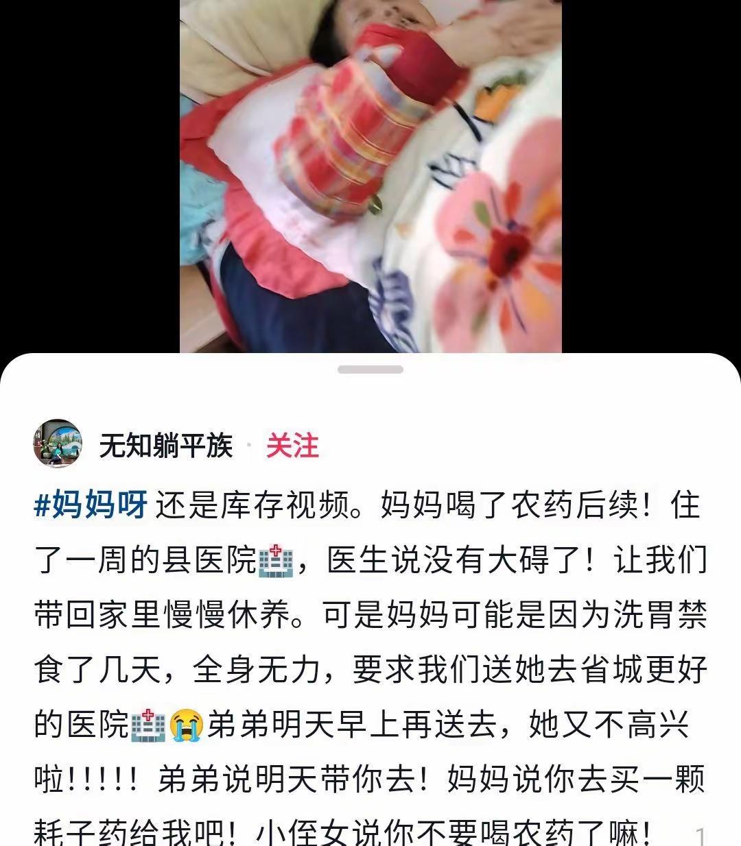 赢了厕所,输了住院钱。 贵州。 女子的母亲很执着,不肯在家建厕所。自己便在桶里,让儿子去倒。儿子花1000元在家修了厕所,母亲喝了半瓶农药,花了1万多。 NBD母亲太让人无奈,真折磨人。知道子女大了一般的无理取闹没人搭理,所以就寻死觅活让孩子一次一次妥协。这样的人就不要管她,就不要听她的。任其自生自灭,不要被所谓的孝顺绑架。 当然,这样的母亲绝对太少见了,绝大多数的母亲都是无限包容孩子的,对吧?