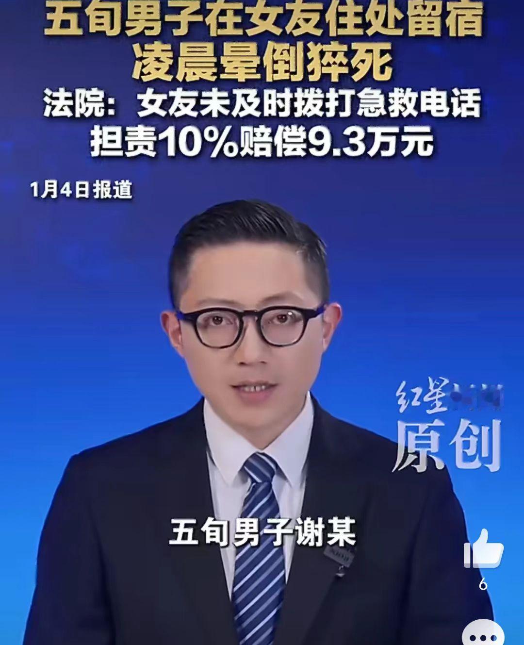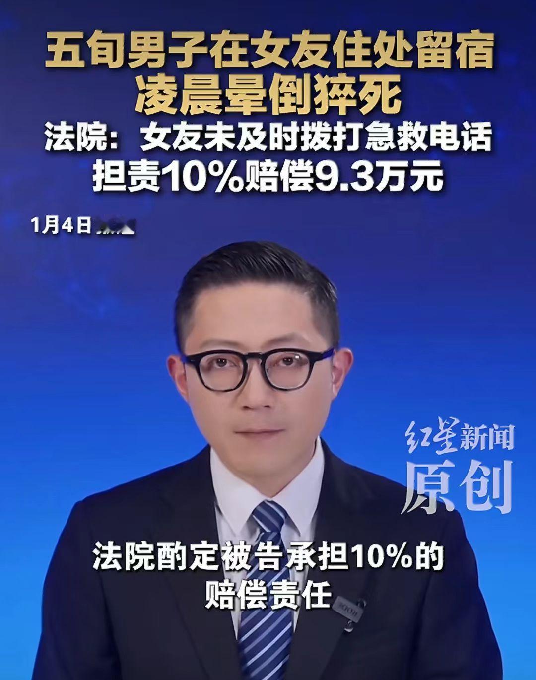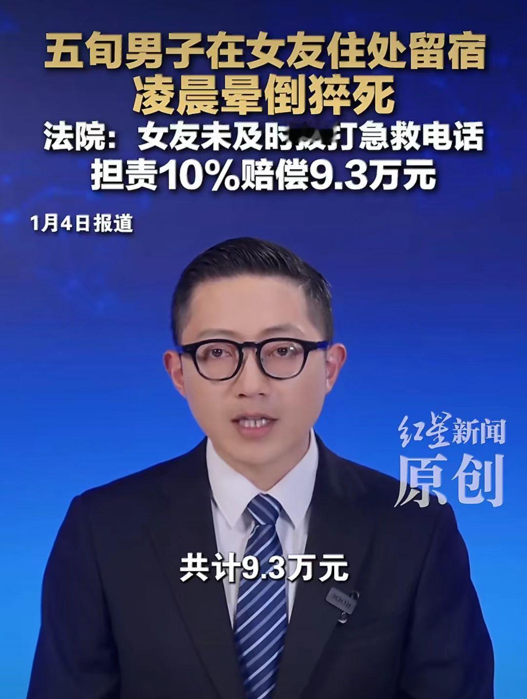 50多岁的谢先生在女朋友家留宿,一高兴就和女友喝了酒。 半夜谢先生猝死,谢先生亲人要女朋友巩女士赔偿18万。 谢先生和巩女士是男女朋友,巩女士觉得男朋友想留宿也就同意了。 两人高兴就喝了点酒,谢先生虽然50多岁了,但是不服老啊!在酒精的作用下,和女朋友发生关系了。 谢先生总觉得不舒服,但是也没多想,就自己找了点胃药吃。 半夜1点左右,巩女士发现谢先生昏倒在洗手间,就急忙找邻居帮忙把人抬到床上躺着,然后就打车去找男朋友谢先生的朋友来帮忙。 人都昏迷了,为什么不是第一时间打急救电话呢? 谢先生是1点左右昏迷的,急救电话是3点18分打的。 这中间隔的时间也太长了点。 谢先生家人觉得女朋友做的事情太不对了,明知道男朋友患有高血压、中风等病,还让他喝酒,这不是故意的吗? 谢先生亲人就把巩女士给告了,要求赔偿18.7万元。 这合理吗?男女朋友在一起喝酒是自愿的,发生关系也是自愿的,谢先生也是个成年人,自己能不能喝酒会不知道吗? 谢先生在2024年2月份就查出患有中风病、缺血性脑血管病、高血压2级。 这是明知道身体不能喝酒还是喝了,这个能怪女朋友吗? 法院最终审理认为女朋友巩女士虽然救了谢先生,但是救助不当,应赔偿9.3万元。 巩女士是做梦也没想到老了,谈个男朋友竟然让自己人财两空。 你觉得女朋友有责任吗?应该给赔偿吗?