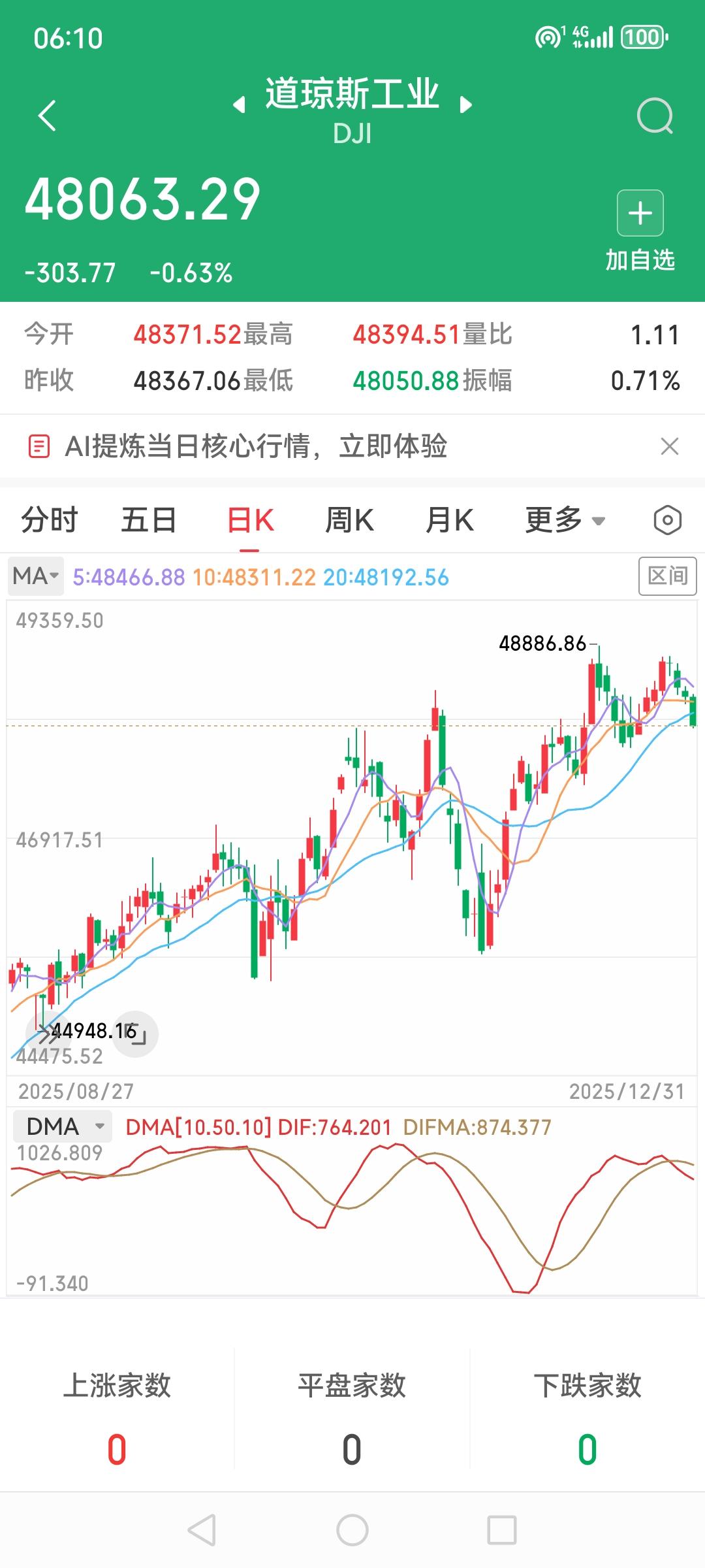 ✅新年伊始,2026第一天,昨晚美股三大指数齐收跌,不出所料,跌吧,跌跌性价比更高,纳斯达克跌0.76%到23421,标普跌0.74%,道琼斯跌0.63%。 ✅纳斯达克2025年累涨20.36%;标普500 2025年累涨16.39%;道指2025年累涨12.98%。 ✅大型科技股年内普涨。谷歌2025年累涨约66%,英伟达2025年累涨约39%,微软2025年累涨超15%,Meta 2025年累涨超13%,特斯拉2025年累涨逾11%,苹果2025年累涨超9%,奈飞、亚马逊2025年累涨超5%。 ✅纳斯达克中国金龙指数收跌1.13%,2025全年累涨11.33%。蔚来跌超7%,网易跌2%,百度跌超1%;哔哩哔哩微涨。明星科技股全年表现分化,阿里巴巴累涨超75%,网易累涨超58%,百度累涨近55%,哔哩哔哩累涨近36%,京东累跌近15%。 ✅2026希望超过2025,跟上美股三大指数的节奏。美股 美股走势