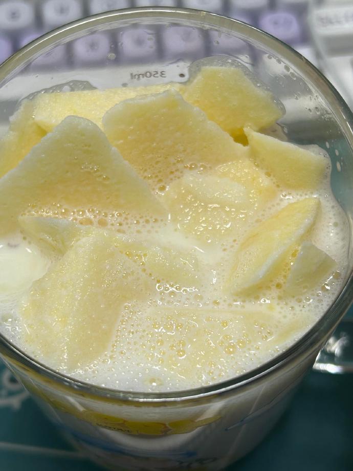 苹果烤奶成功!闻着比喝着香 是苹果味的牛奶,没有香精味的苹果味牛奶 哈哈 苹果的酸甜中和了牛奶的醇厚!没放盐,也很好喝,下次放盐试试 👊成功的关键是:不是烤,也不是煮,微波炉只起到一个加热的作用!想着过热牛奶的营养价值就流失了,只加热了一下,没想到成功了!哈哈 1️⃣苹果去皮切小块,牛奶倒入(个人感觉配比多少无所谓,想主要喝奶就多加奶,想吃苹果就多放苹果) 2⃣️微波炉高火1分钟,搅拌一下,再高火一分钟 这时候的奶不是烫的,苹果也还是苹果,刚刚好! 成功解决了我有好多牛奶,还有好多苹果吃不完的烦恼苹果炖奶 烤奶牛奶 复刻苹果炖奶 懒人烤牛奶
