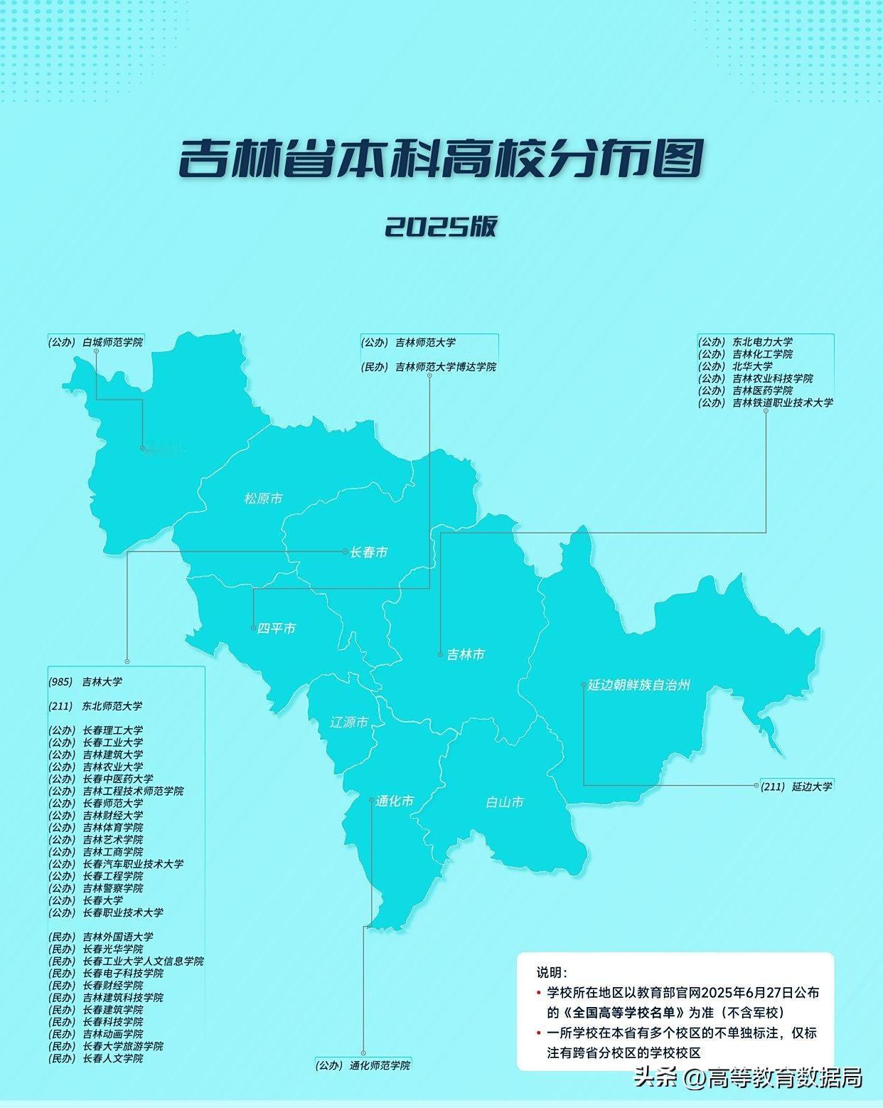 东北三省的高等教育基础相当不错,辽宁有2所985大学和2所211大学;吉林有1所985大学和1所211大学;黑龙江有1所985大学和3所211大学。而且三省都有相当多实力不错的双非省属大学,东北三省的高等教育资源整体是属于比较均衡的。但东北三省一些城市也面临着缺乏本科教育资源的局面。 随着朝阳师范学院的设立,辽宁省内还有盘锦、辽阳和铁岭等3座地级城市没有独立设置的本科院校。但盘锦设有大连理工大学盘锦校区,拥有985大学分校区,整体实力跃升,辽阳也凭借邻近沈阳的优势,设有辽宁大学辽阳武圣校区和沈阳工业大学辽阳分校,也拥有了211大学分校区;省内真正没有本科院校的只有大城市铁岭。 吉林省内还有松原、辽源和白山3个地级市没有本科院校。松原市规模较大,有200多万人口,未来在筹建一所本科院校的可能性比较大。辽源和白山只有100多万人口,经济总量也偏小,不一定有实力办本科大学,甚至未来还有被撤并的可能。 黑龙江省内还有鹤岗、双鸭山、伊春、七台河、大兴安岭等5个地级城市没有本科院校。这些城市人口规模比较小,人口持续外流,不应该保留为地级城市,办本科院校的基础不强。强烈建议鹤岗与佳木斯合并,七台河和双鸭山合并。 东北高校 吉林 辽宁