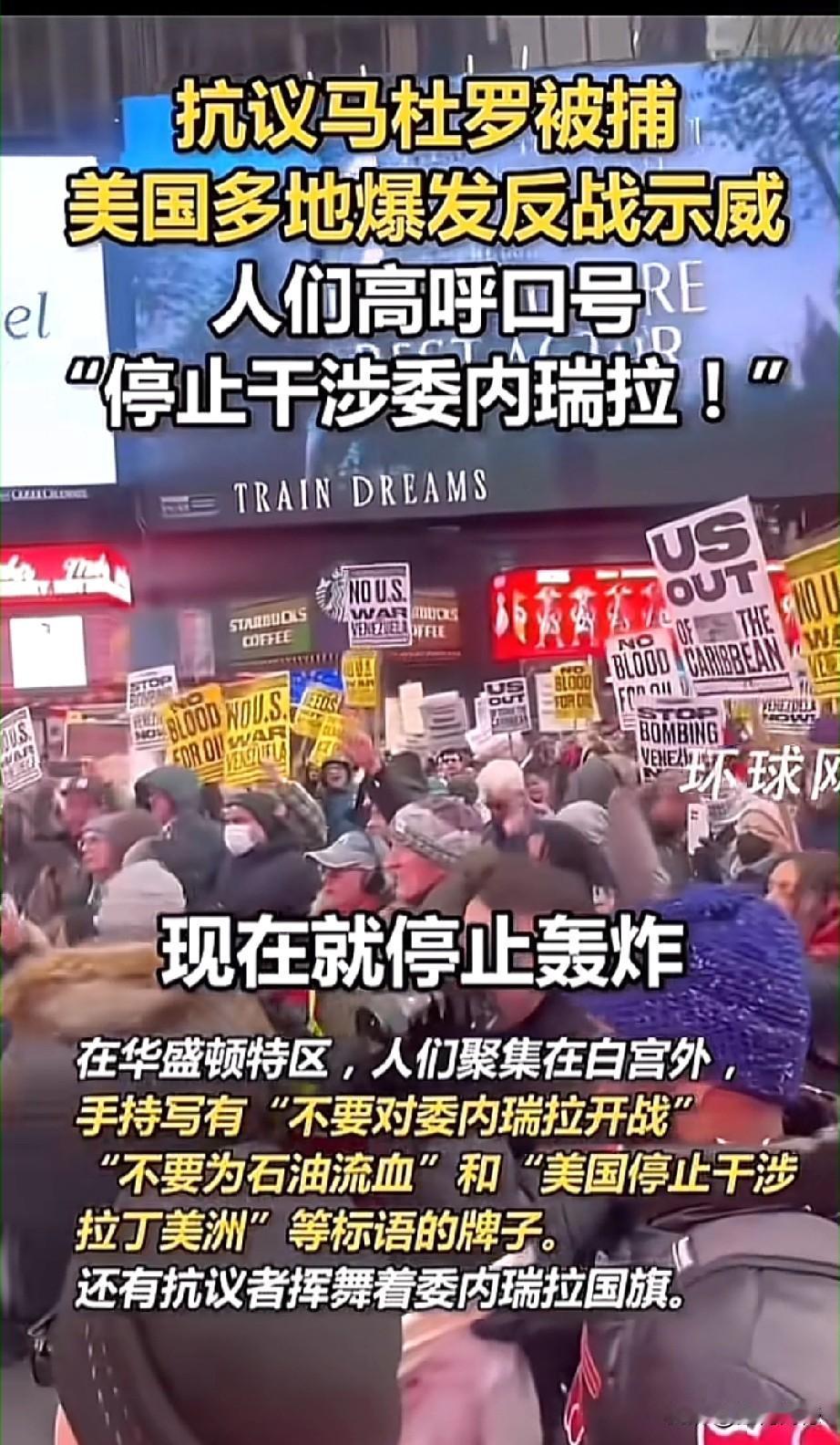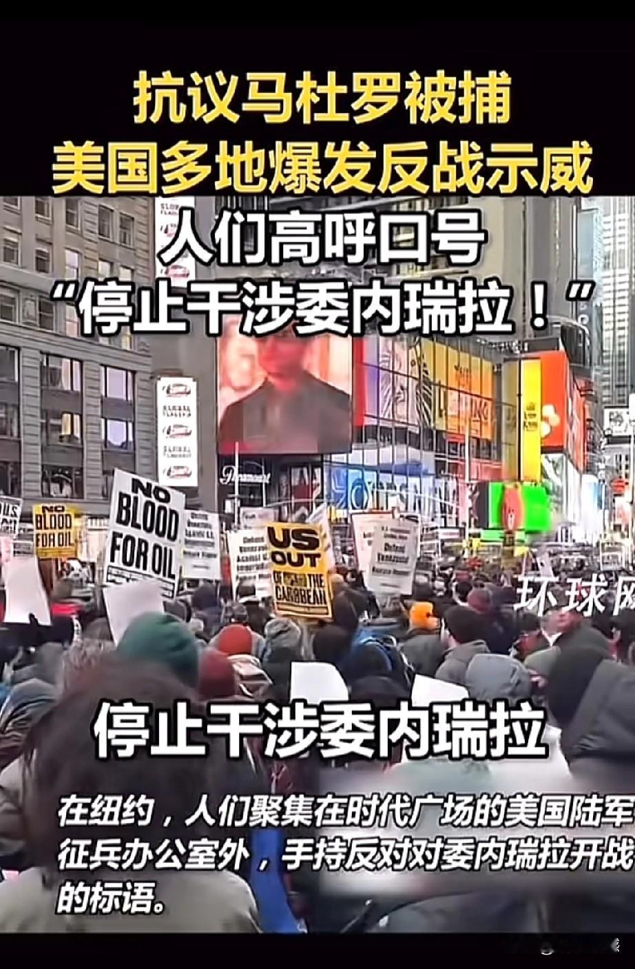 马杜罗夫妻被美国人抓住后,消息一经披露,美国多地爆发了反战示威,民众走上街头,举着牌子,高呼口号,抗议马杜罗被捕,高呼停止干涉委瑞内拉,不要对委内瑞拉开战,不要为石油流血,美国停止干涉拉丁美洲,看来美国普通老百姓和老特的想法是不一样的!