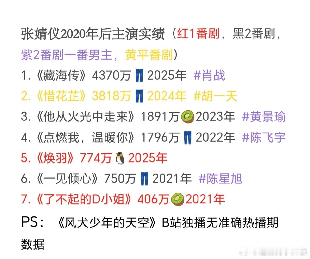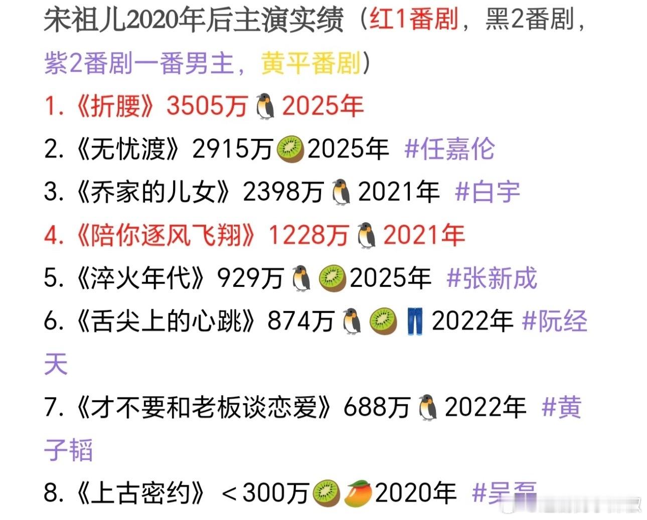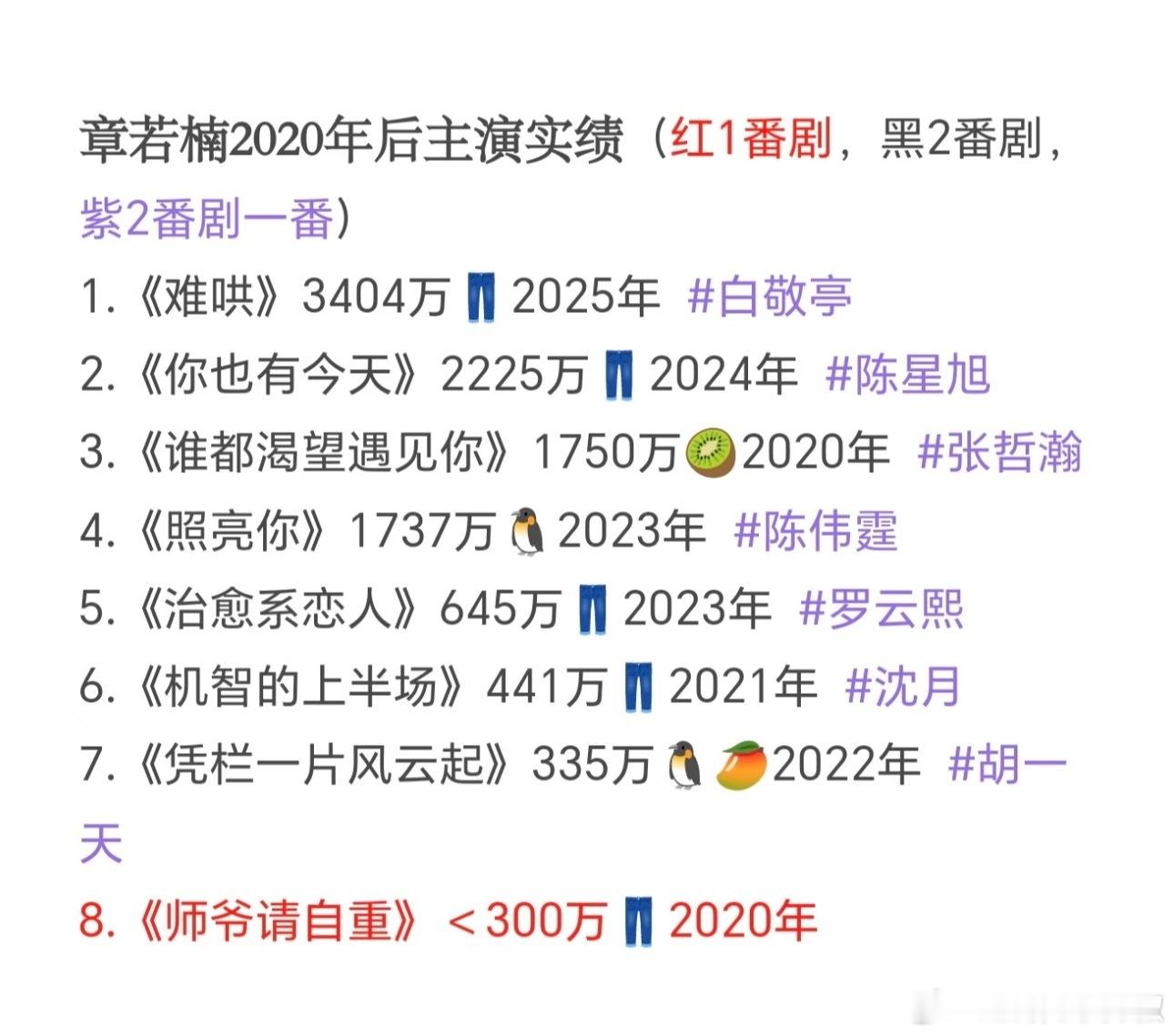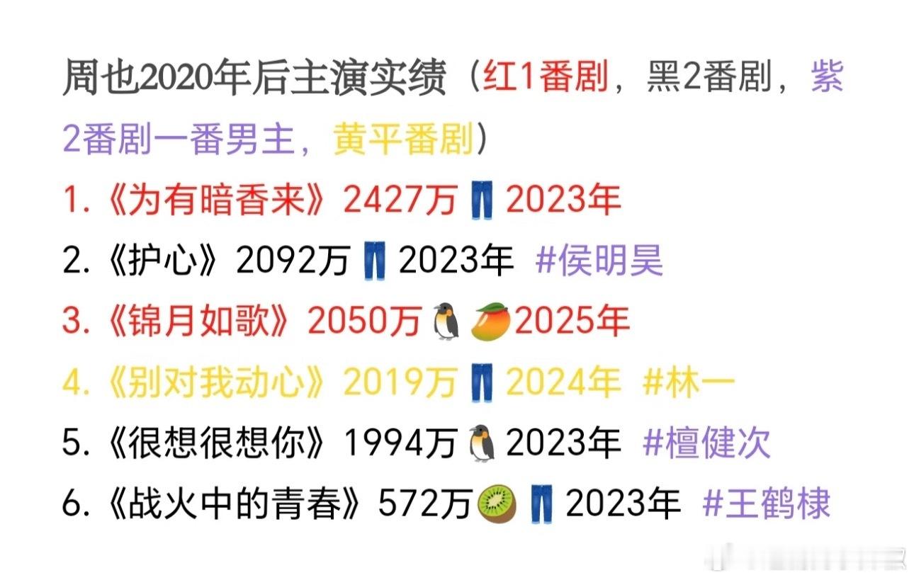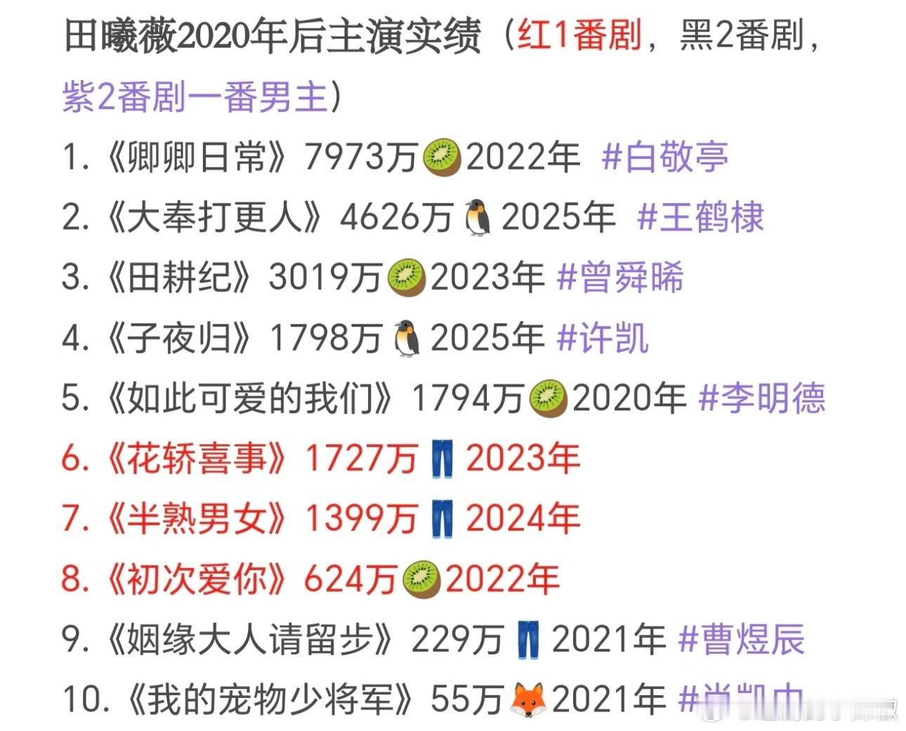 95🌸2020年后主演剧集云合热播期集均,都是积累的实绩啊