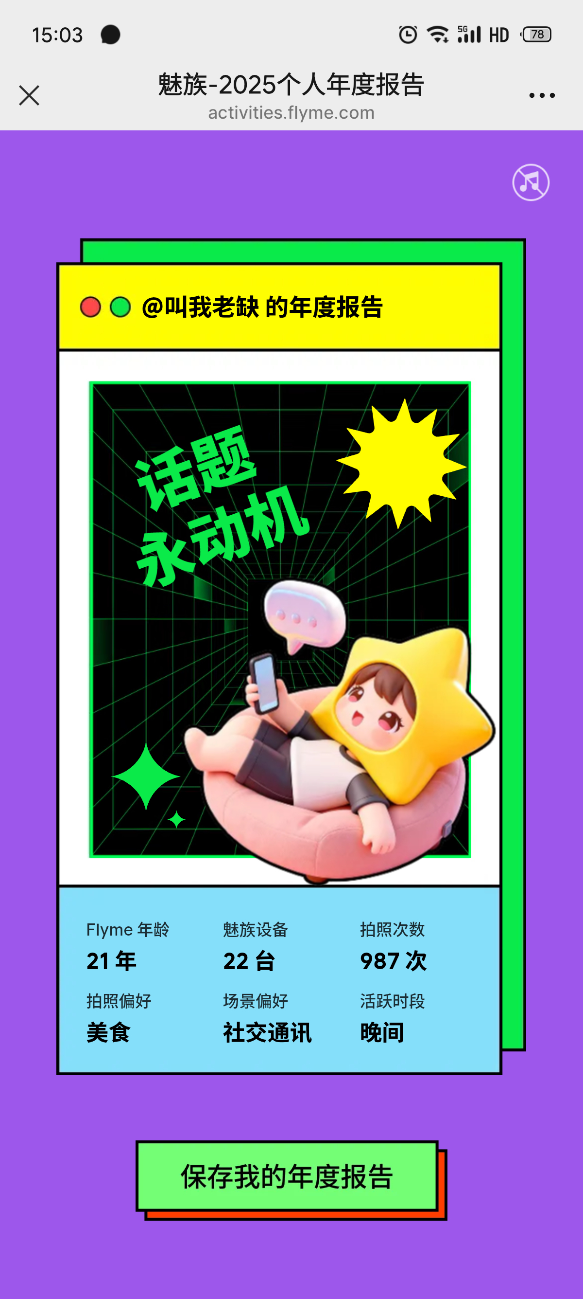 Flyme2025年度报告 魅族我这个Flyme账号有21年了绑定过的设备应该不止22台,不过恰好现在用的是魅族 22,所以,都是缘分啊