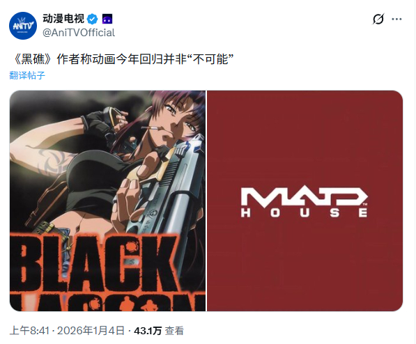 《黑礁》作者表示:新作动画在今年回归也不是不可能!
