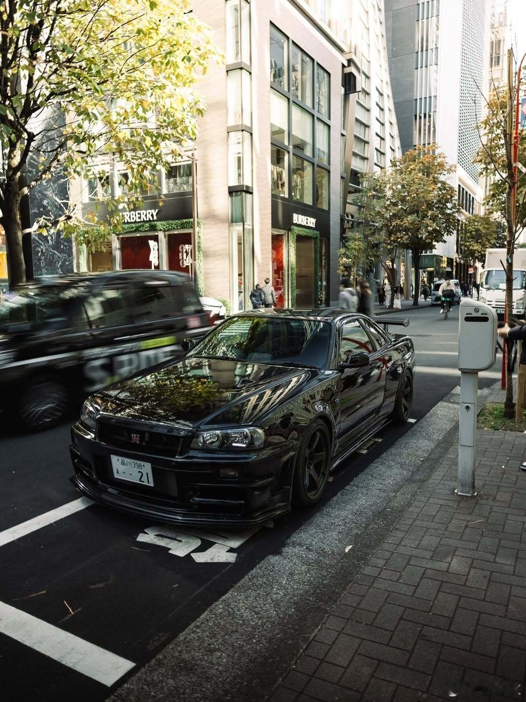 型车街拍 东京街头的 R34 GT-R V-Spec II。这车,这构图,这街景,放在一起全都对了。相比普通 R34 GT-R,V-Spec II 标配更硬的悬架调校、前后 LSD、主动式四驱与更激进的空气动力学设定,换装更轻的碳纤维引擎盖,强化散热与前轴配重,把机械潜力压榨到了极致。📷 pcap_media