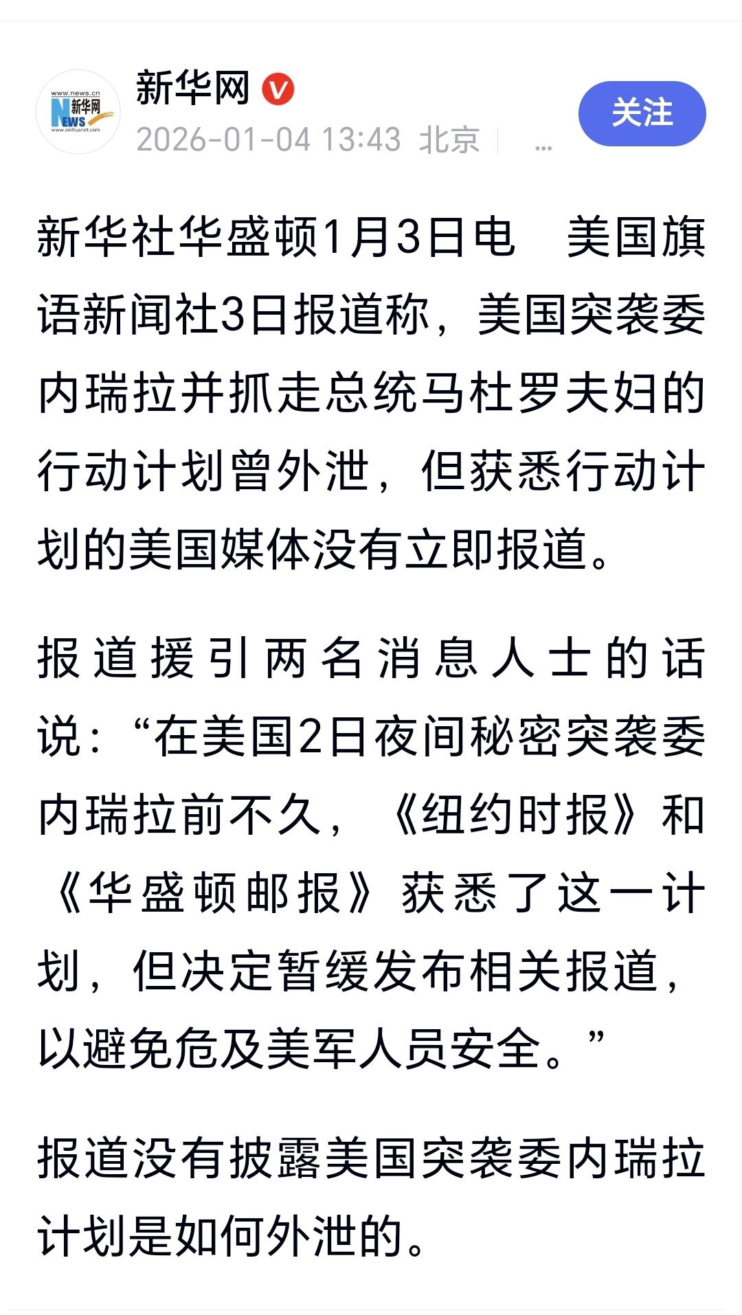 美国人抓马杜罗是假,卡我们的脖子是真 美国活捉马杜罗,表面看是为了掠夺委内瑞拉的石油、黄金和稀土,实际上是在卡我们的脖子。 1:马杜罗被推翻以后,美国接管委内瑞拉,委内瑞拉国土上的资产控制权,就掌握在美国人手里面,我们在那里的资产命运,也掌握在美国人手里面,美国人就卡住了我们这些资产的脖子。 2:美国人控制委内瑞拉的石油以后,这些石油的销售权就在美国人手里面,他愿意卖给谁,就卖给谁,他愿意卖什么价钱,就卖什么价钱,我们买委内瑞拉的石油,需要跟美国人谈判,我们买委内瑞拉的石油,需要跟美国人谈价格,美国人就卡住了我们石油的脖子。 3:美国人控制委内瑞拉的黄金以后,他可以通过这些黄金来控制世界黄金市场价格,他愿意黄金价格上涨的时候,就禁止委内瑞拉出售黄金,他愿意黄金价格下跌的时候,就抛售委内瑞拉的黄金,以此达到它的目的,美国人就卡住了我们黄金的脖子。 4:美国人控制委内瑞拉的稀土以后,他就减少了对我们稀土的依赖,在与我们的谈判中就多了一份重要的筹码,我们以稀土作为筹码,卡美国人脖子的效果就没有了,很有可能美国人会以委内瑞拉的稀土资源,来反卡我们的脖子。 美国人活捉马杜罗,我们必须要有所行动,坚决反对美国人的强盗行径,坚决维护委内瑞拉的领土完整,坚定支持委内瑞拉的国家主权,我们可以派出维和部队进入委内瑞拉,帮助委内瑞拉维持稳定的局面。 天若令其亡,必先让其狂,美国已经名副其实成为世界上最大的恐怖主义国家,美国的好日子到头了,拭目以待吧!