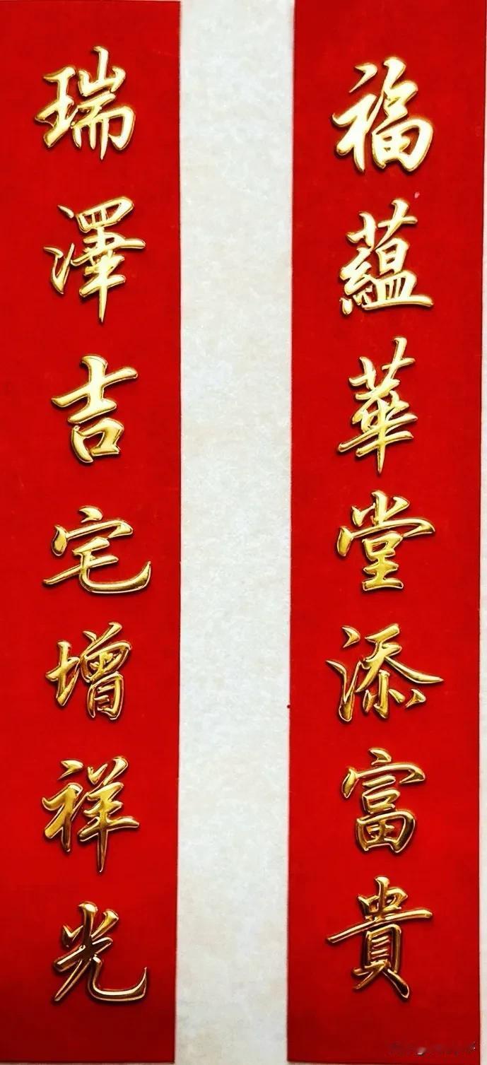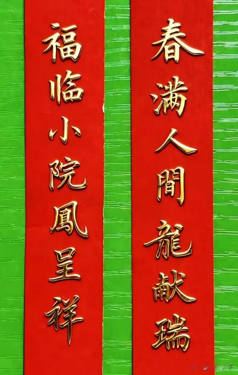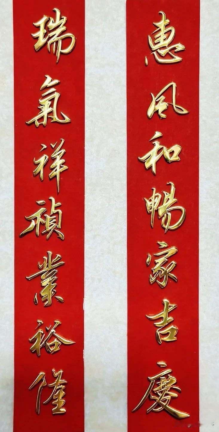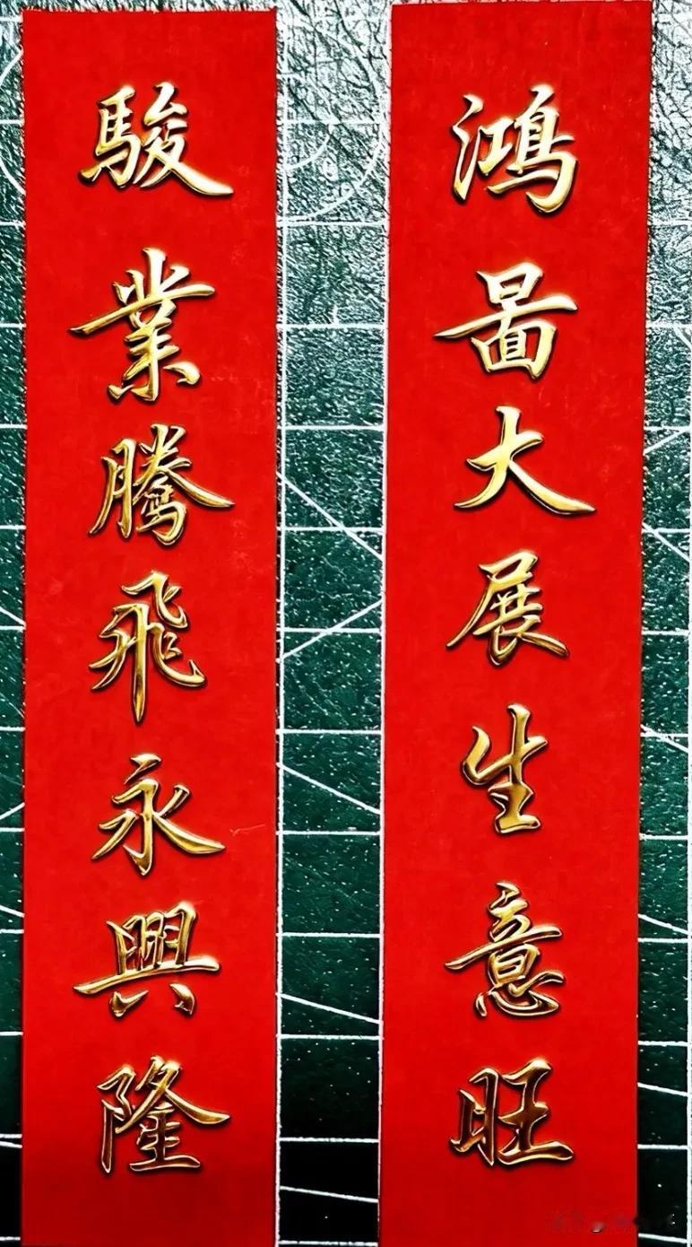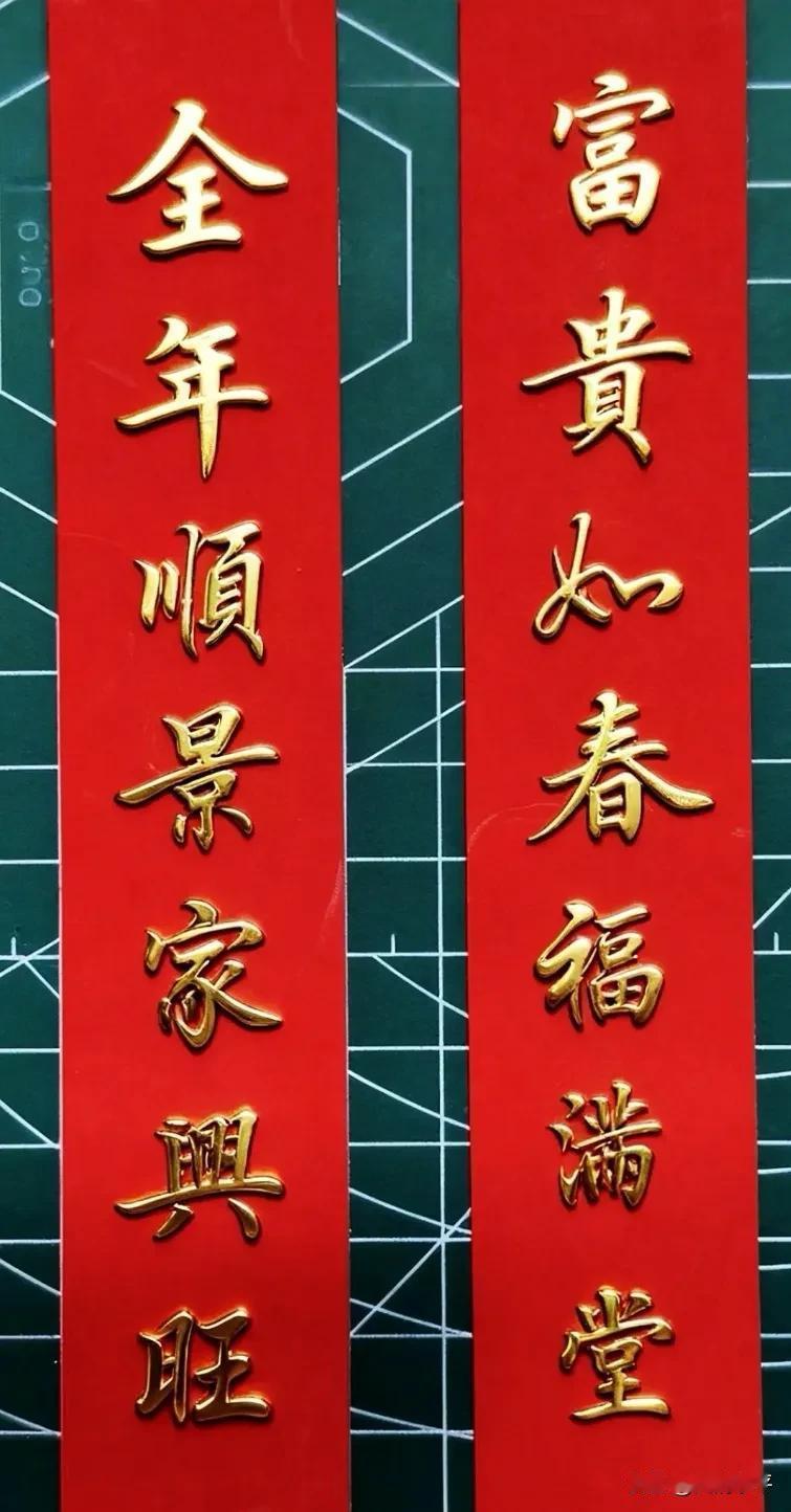 这么精美的红底烫金字不知道怎么做出来的?立体感十足,喜气满满,春联如有如此效果,那可真是一绝啊!