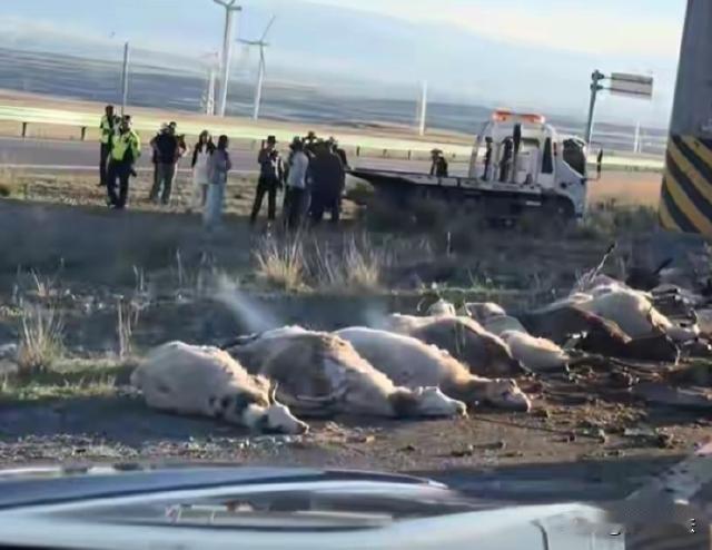湖南湘潭,一辆轿车突然失控冲进路边羊群,连撞带压致54只山羊当场死亡,司机刘某被