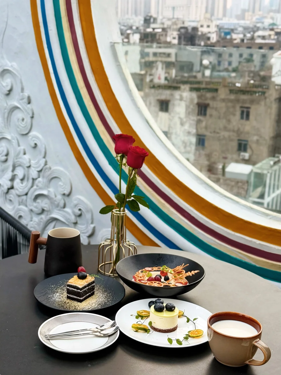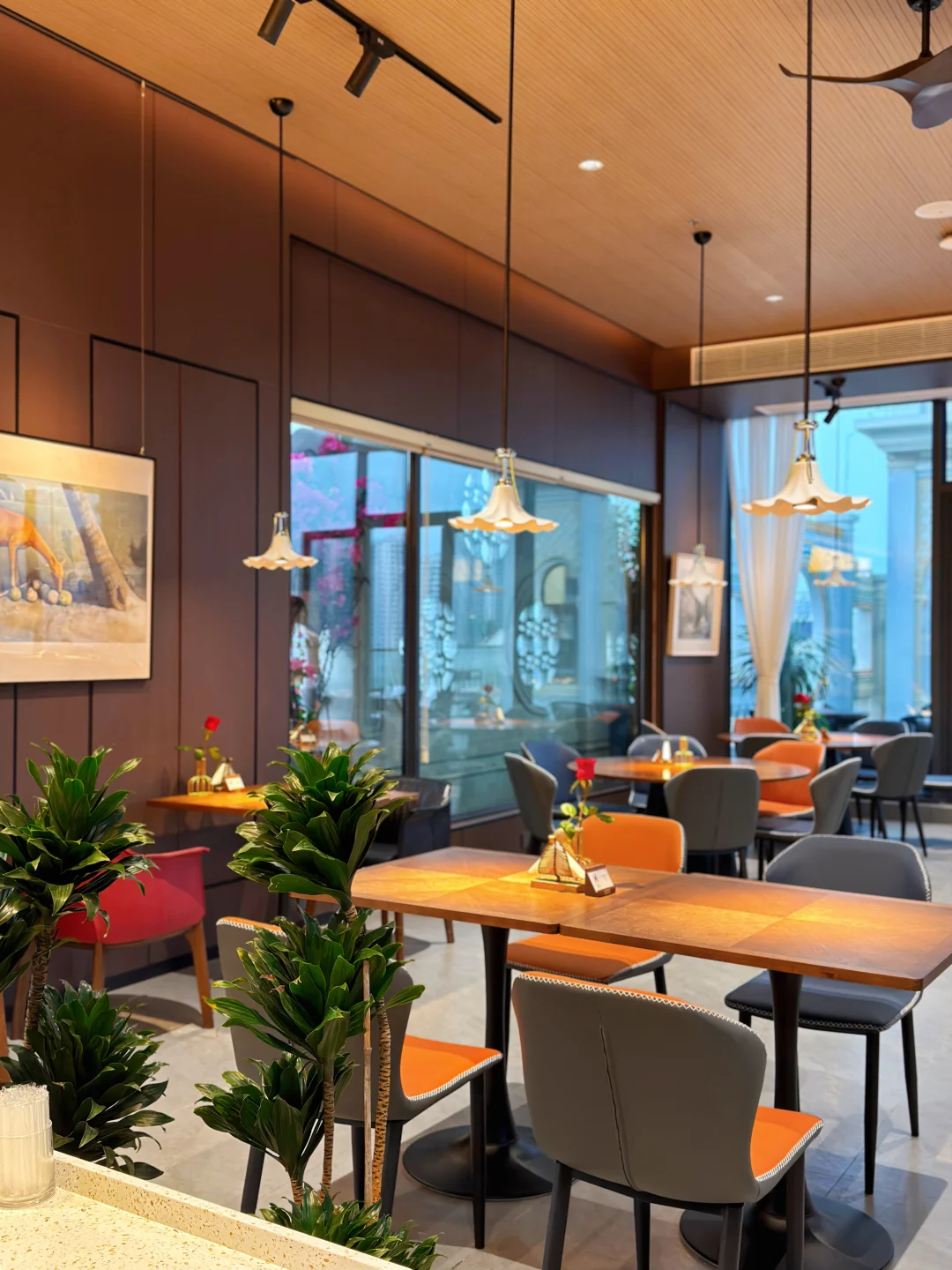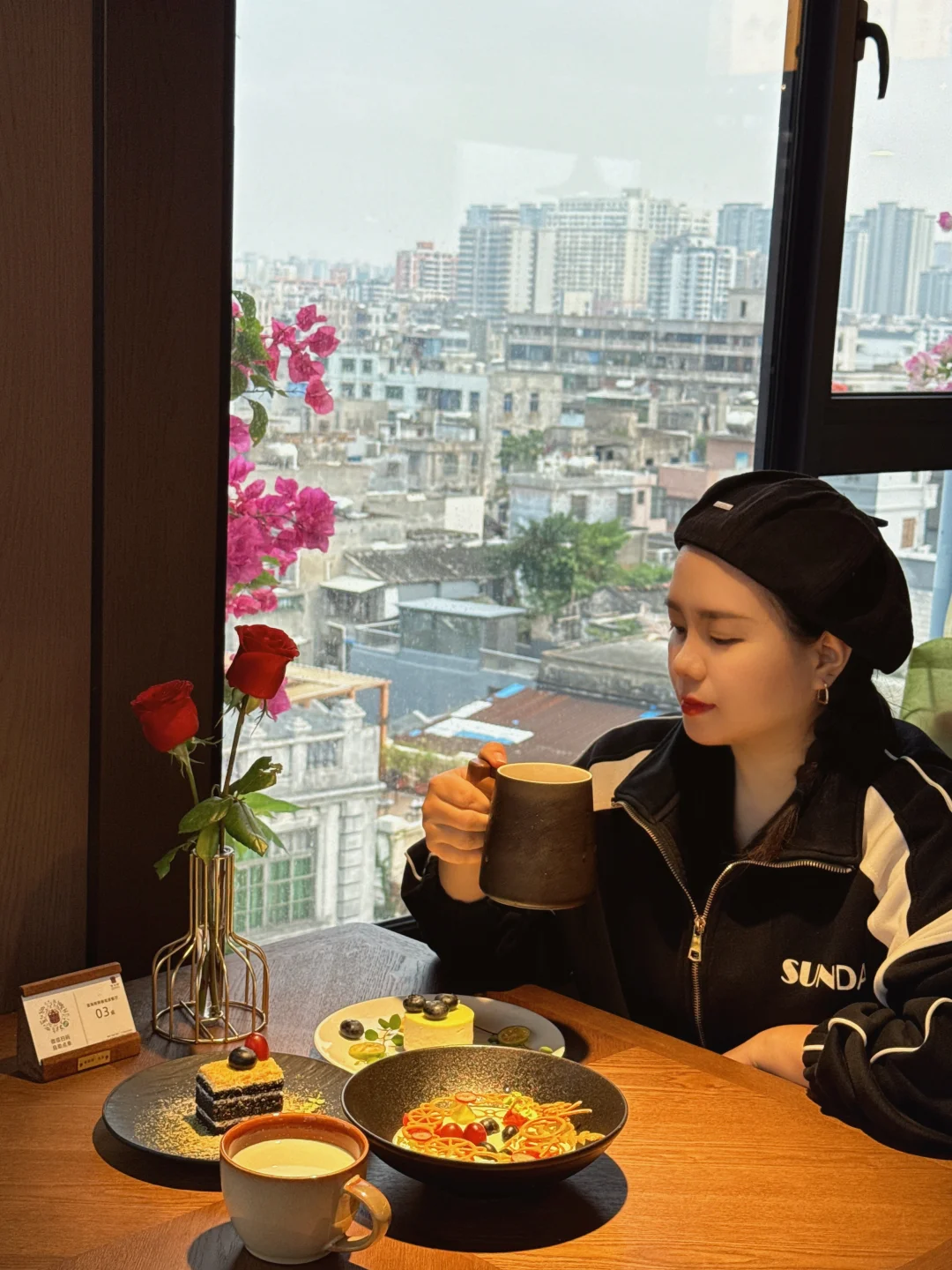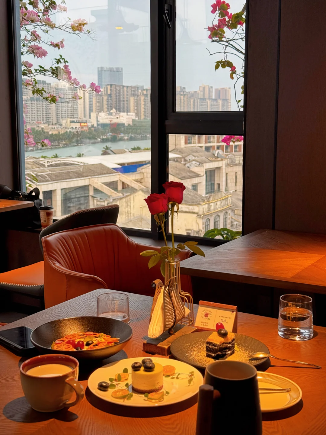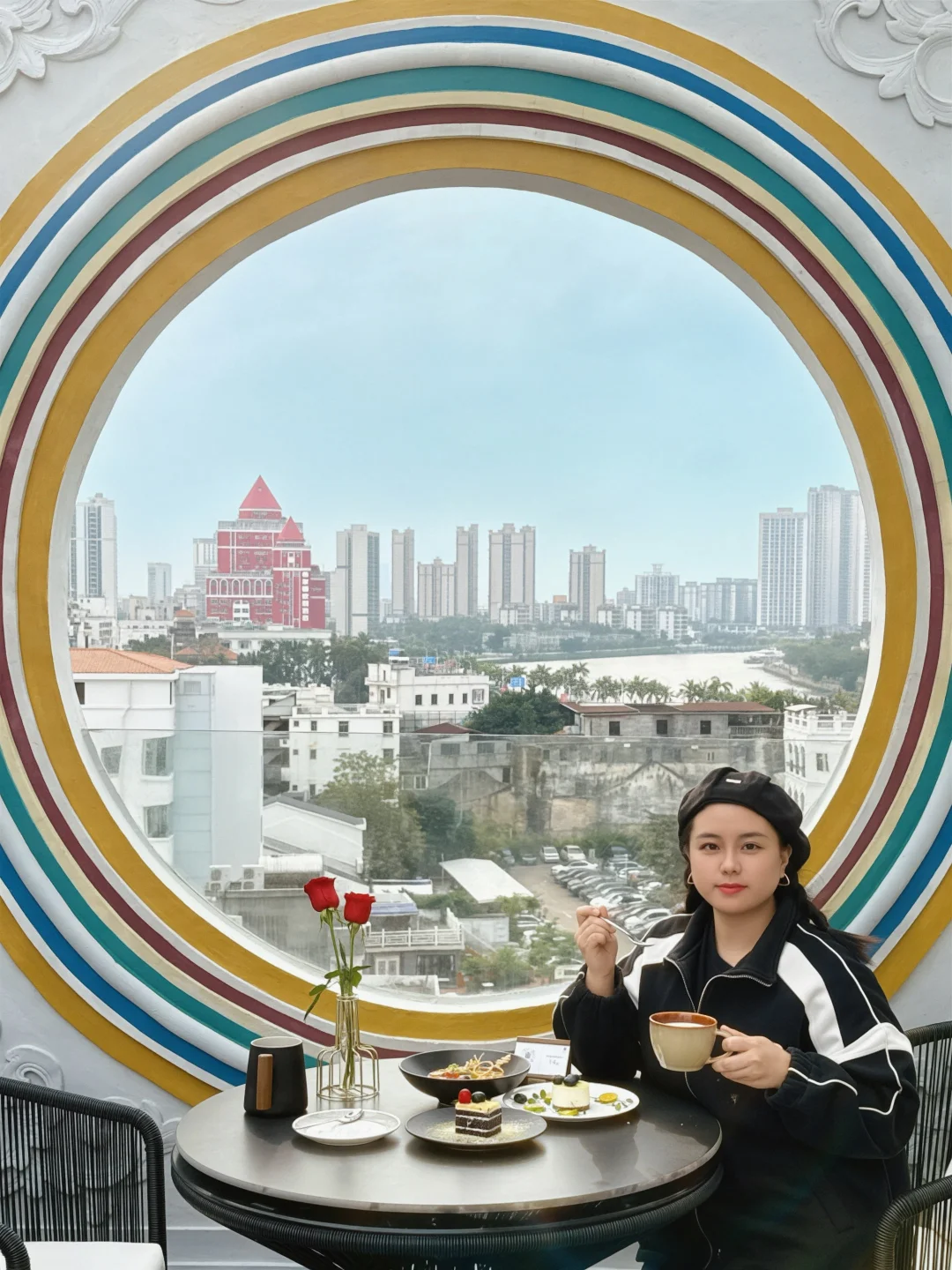 海口骑楼一直都是游客来海口的第一站 这里有着百年历史 每一栋建筑都充满了故事 无意中踏入骑楼老街这家酒店 没想到八楼还有天台空中下午茶☕️ 在天台往下俯瞰 开得旺盛的三角梅点缀了骑楼老街 为百年古楼增添了别样的美 天台上有圆形和方形造型的相框墙 拍照📸好出片 仿佛在一幅画前用餐 ▪️照烧榴莲 不愧是猫山王榴莲果肉做成的 口感绵密 入口丝滑 ▪️柠檬芝士慕斯 蓝莓🫐点缀 入口甜而不腻 🪧小tip 在晴天的黄昏时分 📸还可以拍到绝美落日 姐妹下午茶聚集点非这里莫属❤️