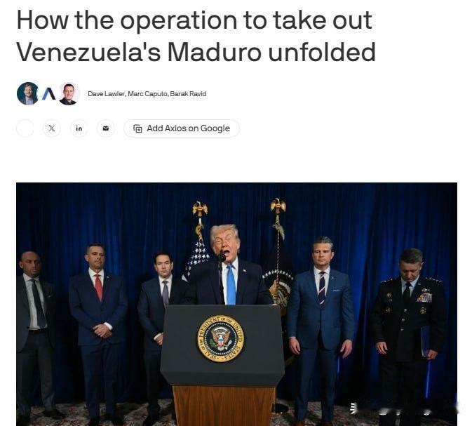 🇺🇸Axios报道:美国军方将保持高度戒备,以防特朗普认为有必要再次对委内瑞拉发动攻击。 一位不愿透露姓名的美国官员表示,对涉嫌运载毒品的船只的打击行动将继续进行,特朗普对委内瑞拉石油的禁运也将继续有效。 该媒体报道称,推翻委内瑞拉政府的计划已酝酿一年之久。一支小型中央情报局小组追踪马杜罗的行踪并研究他的生活习惯。据报道,这些特工掌握了他的住所、出行路线、饮食习惯和穿着打扮。消息人士强调,甚至连他的宠物都了如指掌。