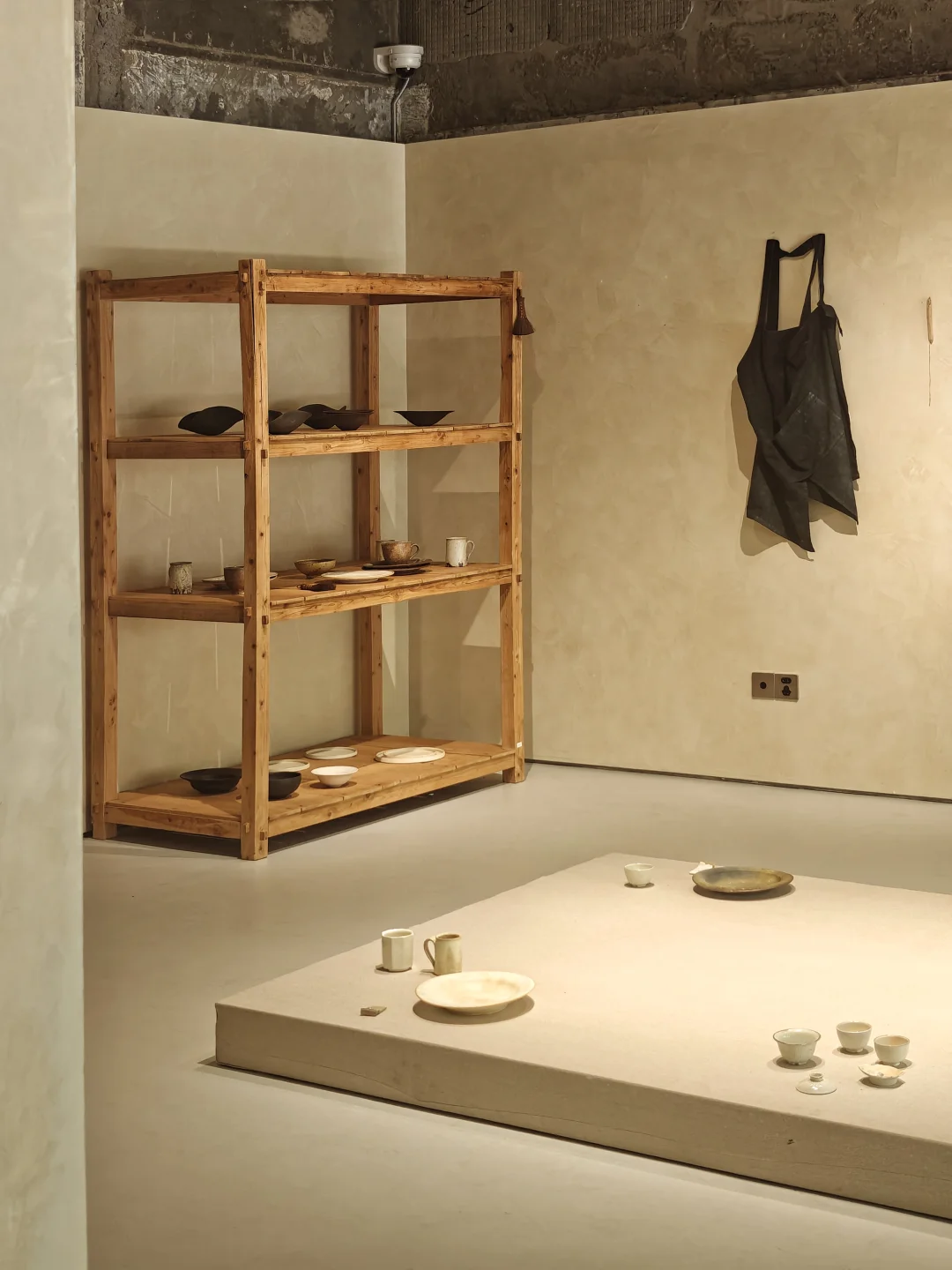 他聚焦传统粉引技法创新,用山野挖取的家乡山土融入化妆土配制原料。