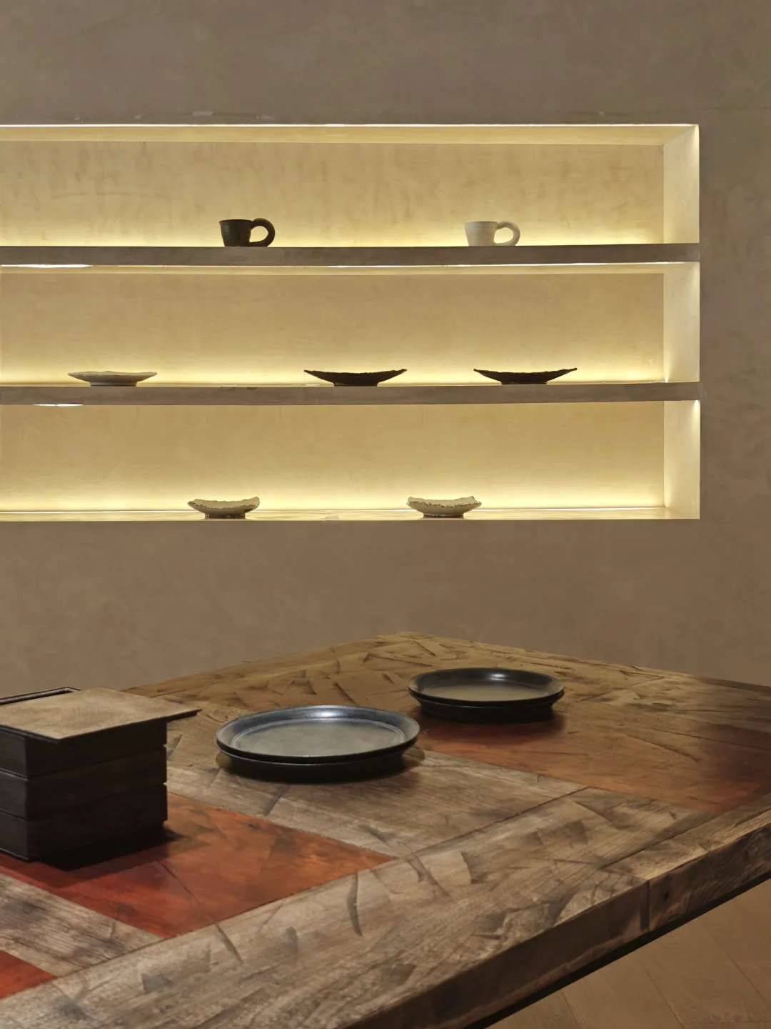 木:仅取益子町本地木材,待充分干燥后转化为桌子、门扉、餐盘,以“就地取材、循环利用”践行与土地的共生