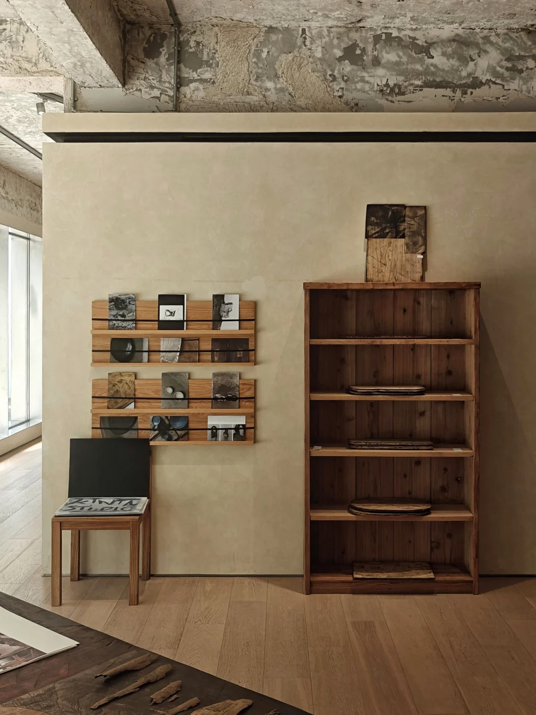 他“倾听材料本来的愿望”,尊重材料的天然属性(如曲线、裂痕),任由其野生生长,赋予材料第二次生命并融入日常。