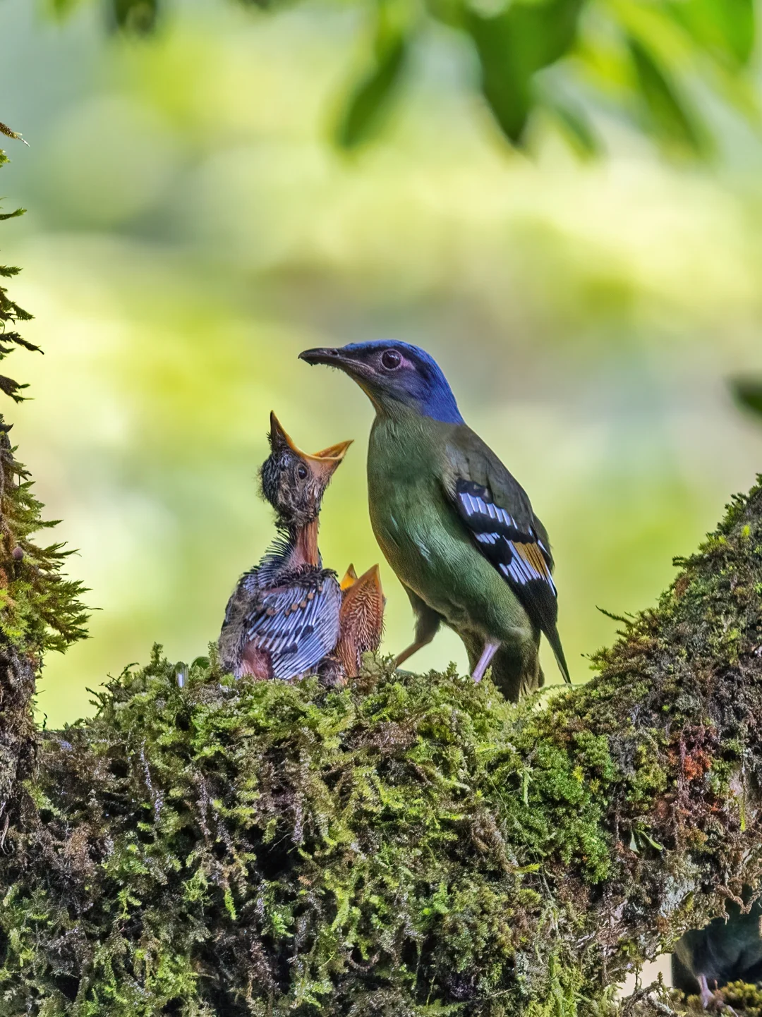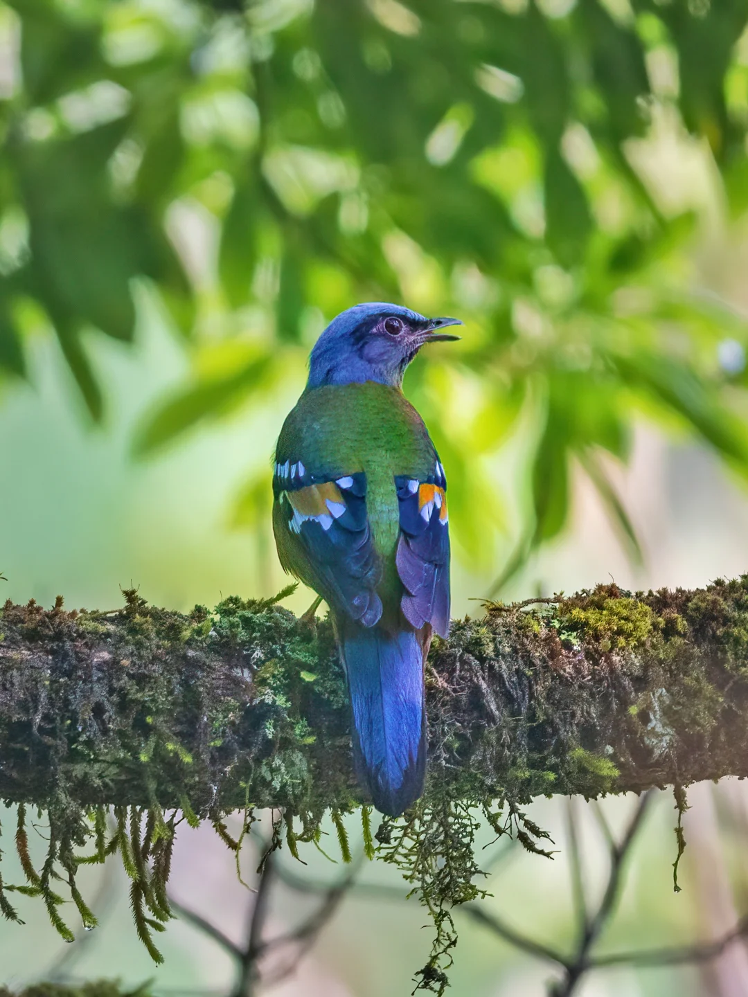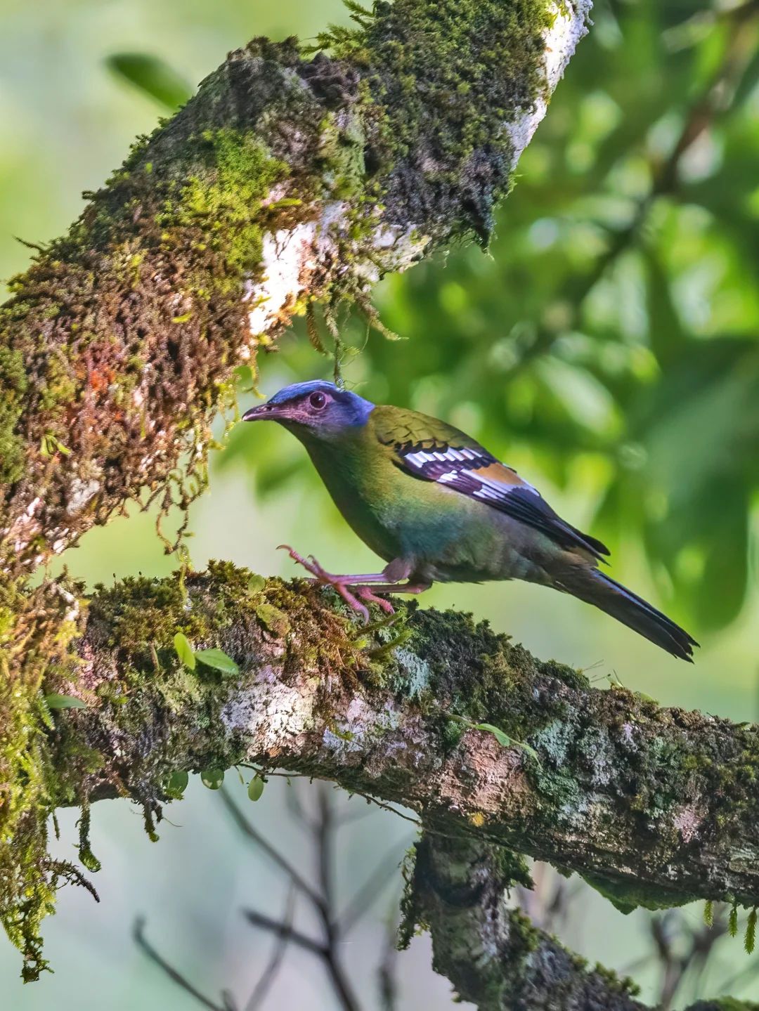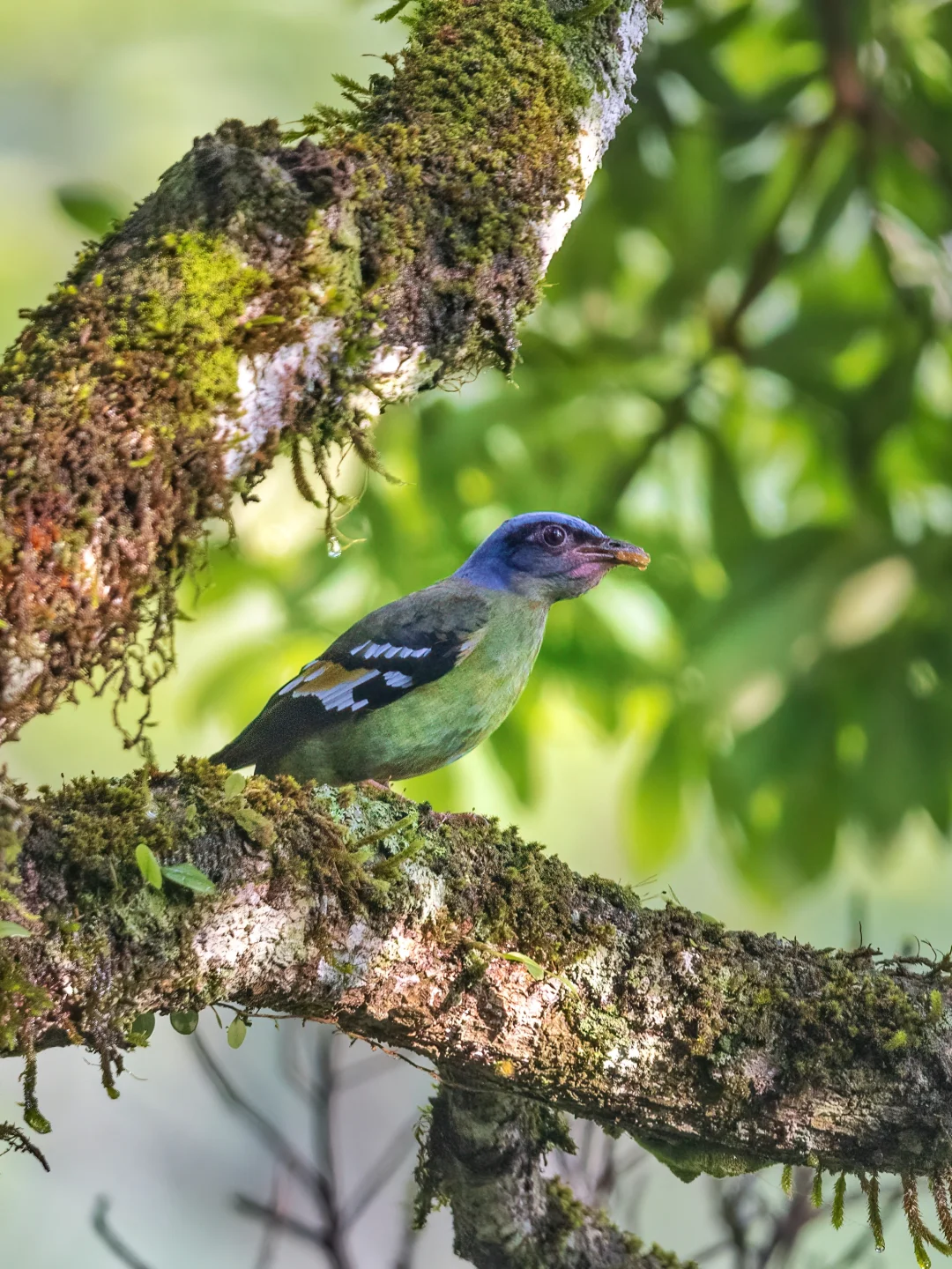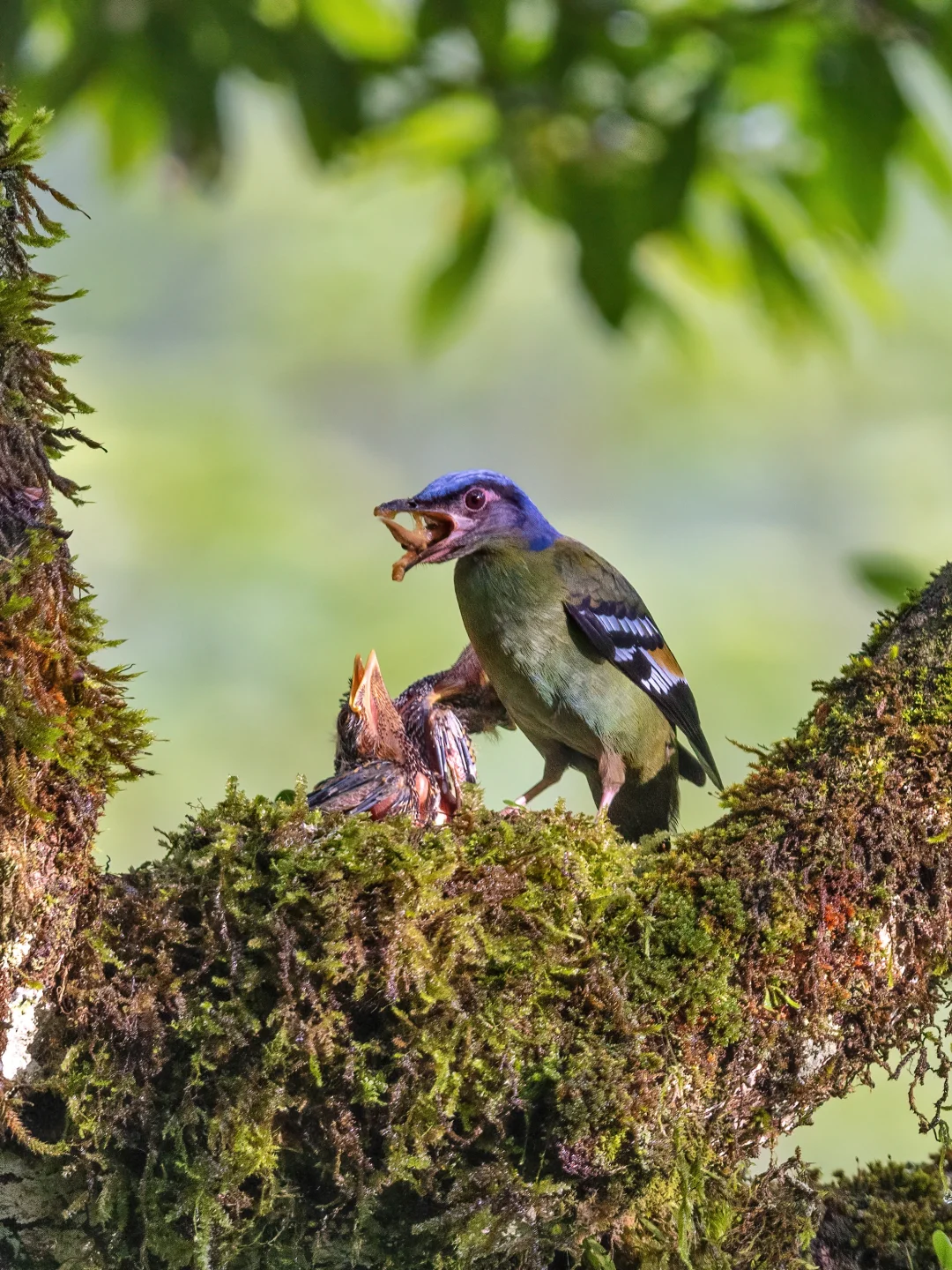 原创拍摄于2024.06 绿宽嘴鸫,雀形目鸫科宽嘴鸫属。国保二级。在我国边缘分布很少见的鸫形小鸟。 绿宽嘴鸫头顶蓝色,翅膀有斑,身体大部分闪辉绿色。 由于在我国是边缘分布,大多发现在云南东南,南部,和广西西南部,所以我们不多见,以前好几次去广西都没看到。没想到这次算是稳了[笑哭R],还是繁殖记录了。