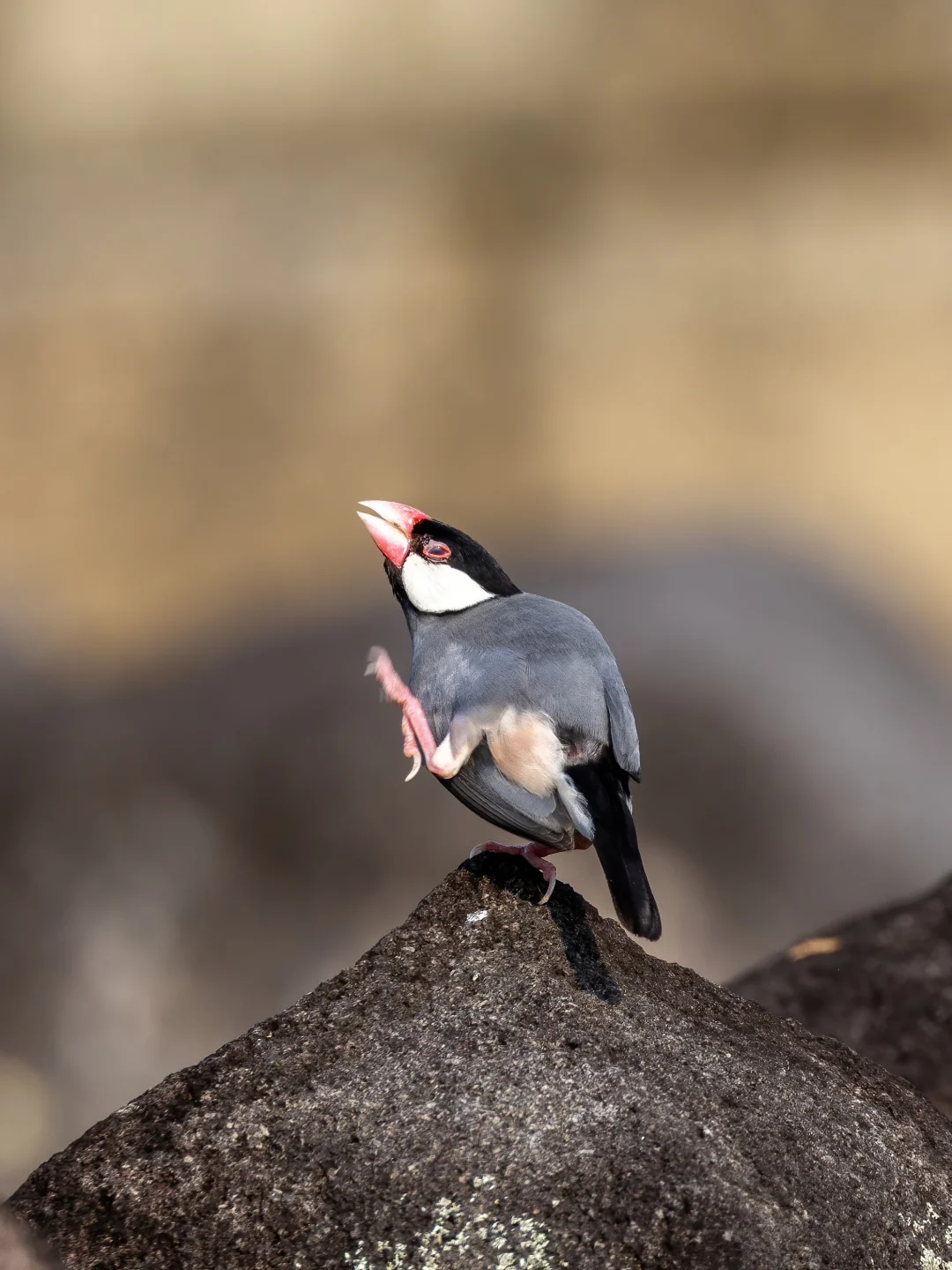 原创拍摄于2024.06 禾雀,雀形目梅花雀科 Padda 属。是原产于爪哇岛上的可爱小鸟,由于实在是太可爱了,经常被捕捉,成为笼养鸟,并且引进到了世界各地,在我国19世纪就引进了这种鸟,在我国东部南部沿海也出现了一些引入的种群。 这次总算见到了原产地的野生禾雀,而不是笼养鸟或者引入/放生的。而且惊喜的是在世界遗产普兰巴南佛庙的遗址上,这个生境也真是特色。 还是提倡一下,请勿捕捉野生禾雀,和任何野生鸟类。
