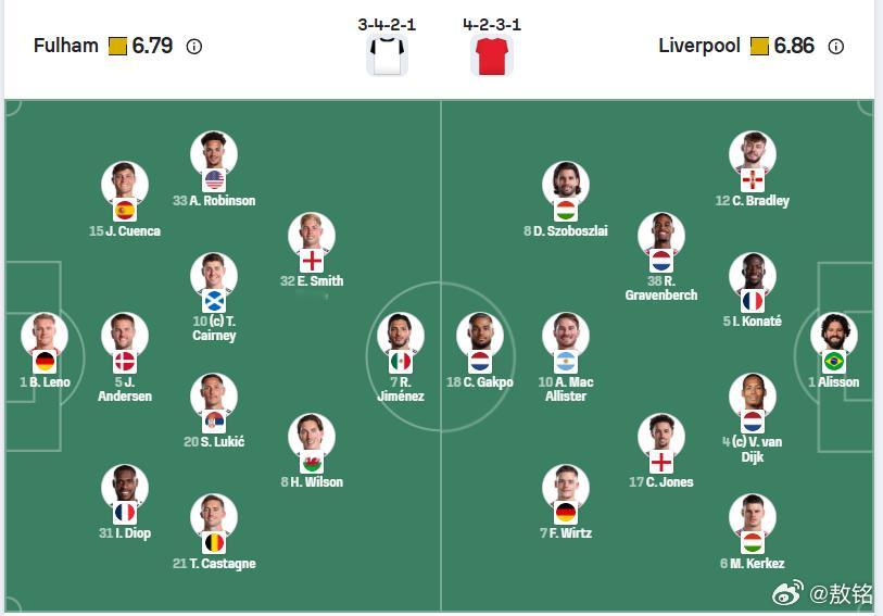 富勒姆vs利物浦 埃基蒂克腘绳肌轻微拉伤,缺席本场比赛,没有进入大名单。斯洛特透露,埃基蒂克应该能赶上与阿森纳的比赛。今天利物浦的首发中锋是哈克波,他以前也踢过这个位置。维尔茨左边锋,索博右边锋,麦卡利斯特10号位。这场比赛利物浦在机会创造方面会暴露不少问题。另外,科纳特+范戴克这对中卫组合,将接受一次现实检验。利物浦