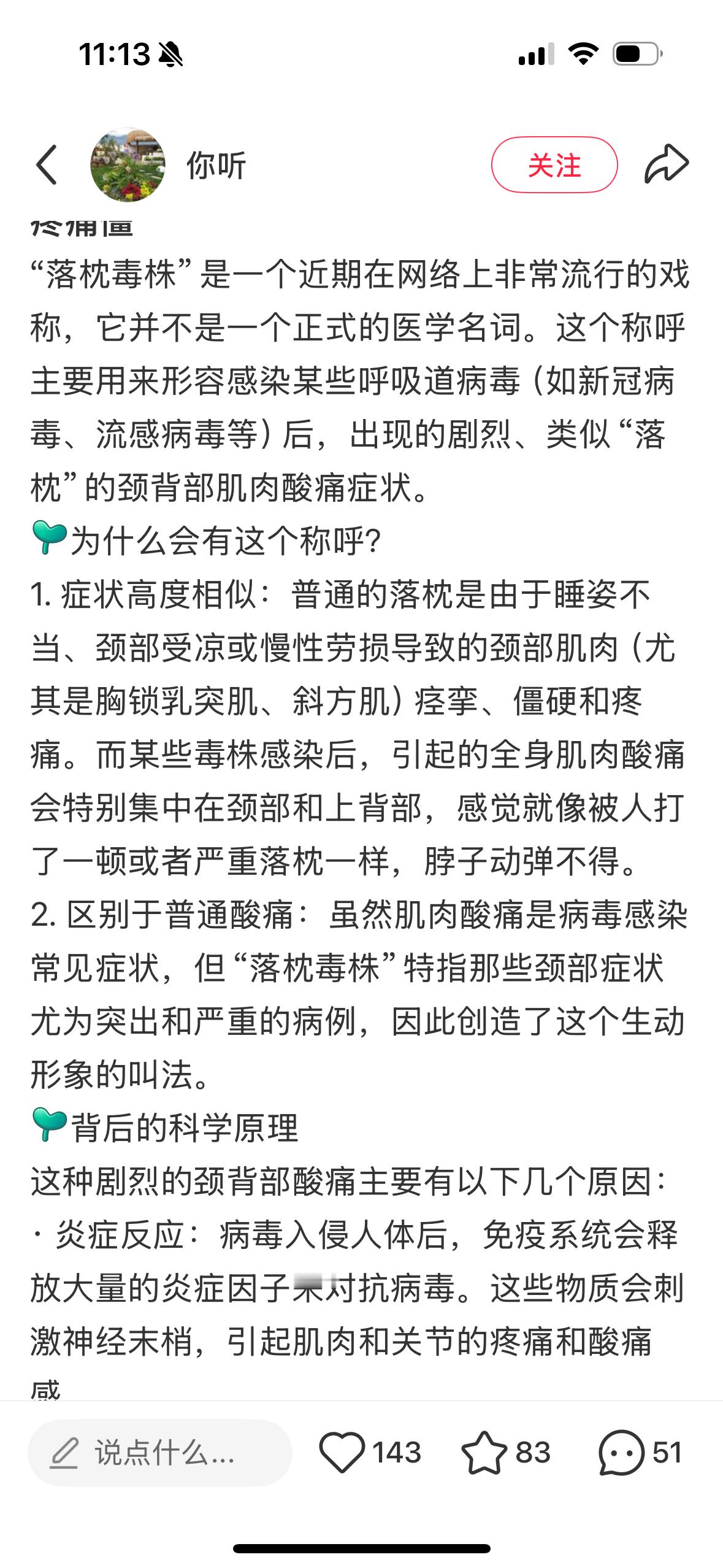 落个枕,疼了5天了,就很离谱找中医推拿,结果更严重了查了下居然有“落枕毒株”现在毒株都这么有针对性了么?大家有遇到过么?