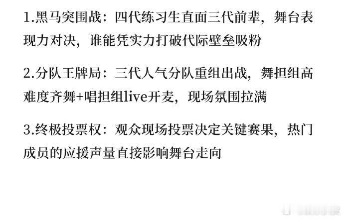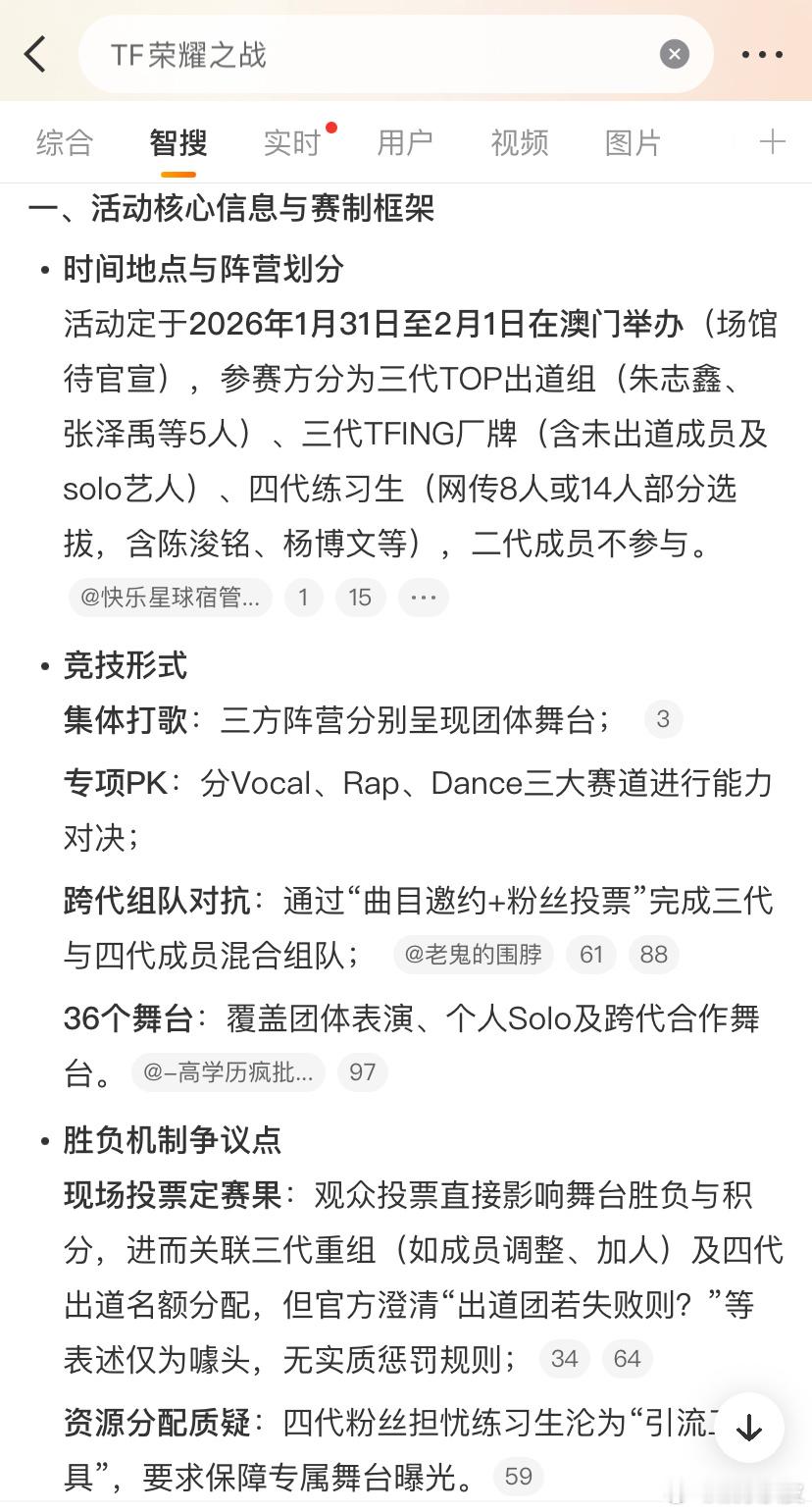荣耀之战分组“TF荣耀之战”跨代组队对抗、四代练习生突围机会来了,荣耀之战的赛果关联团体命运。00后新生代热点捕捉计划